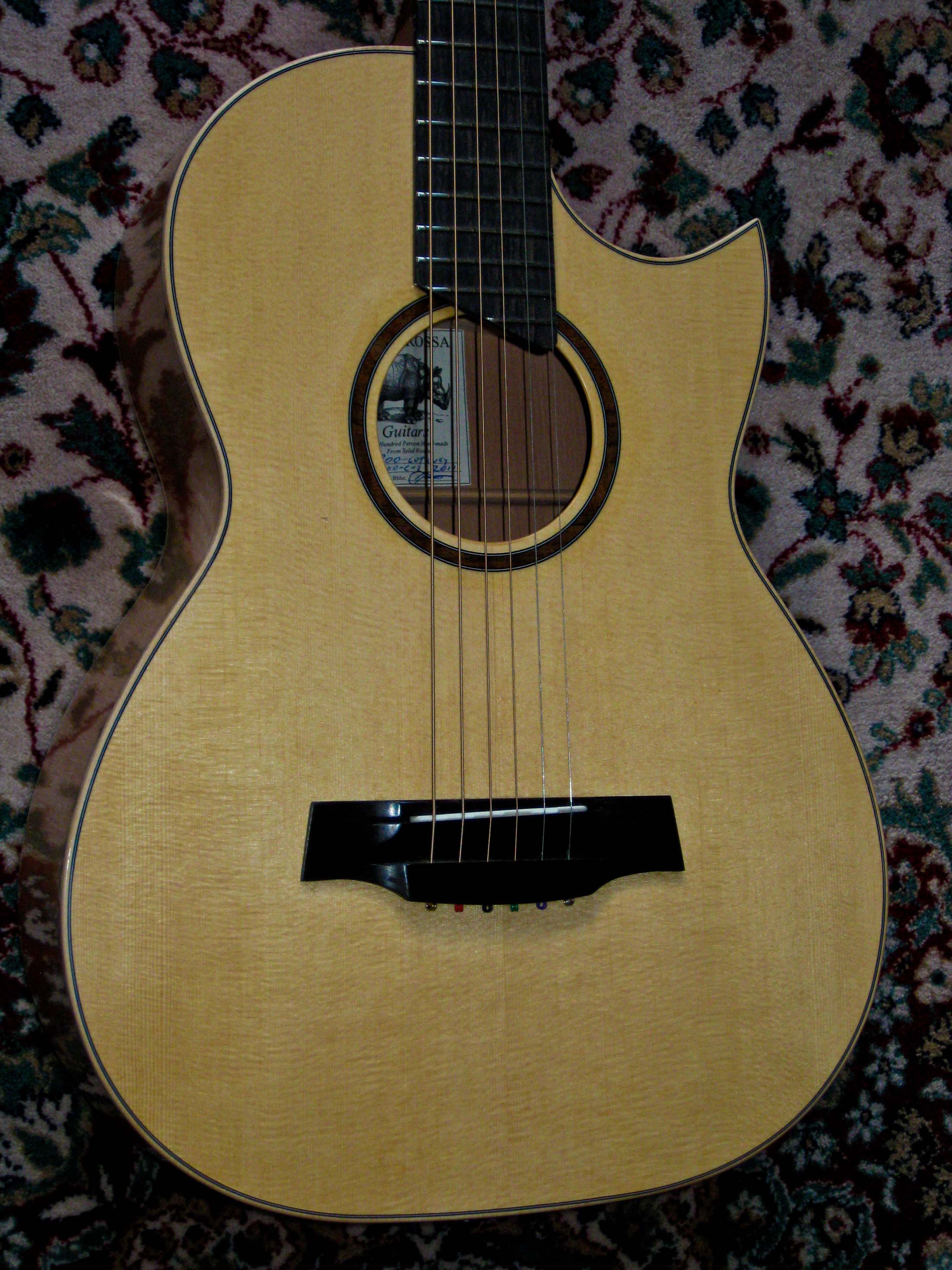 B00 guitar: European spruce top and flamed bigleaf maple back and sides