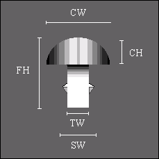 CH = 0.043 inch (1.1 mm, ~3/64 inch)(crown height -- as