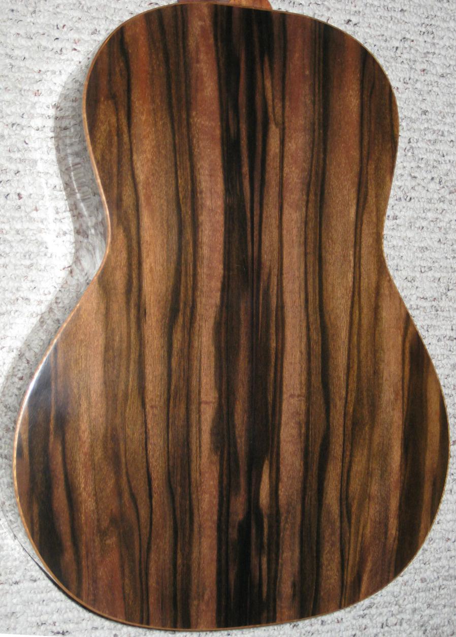 This wonderful and spectacular looking wood makes great steel string guitars, especially large-bodied guitars. Incredible stiffness and bright ringing tap tone makes a guitar with the punch and tone similar to Brazilian rosewood and even more powerful in my opinion.