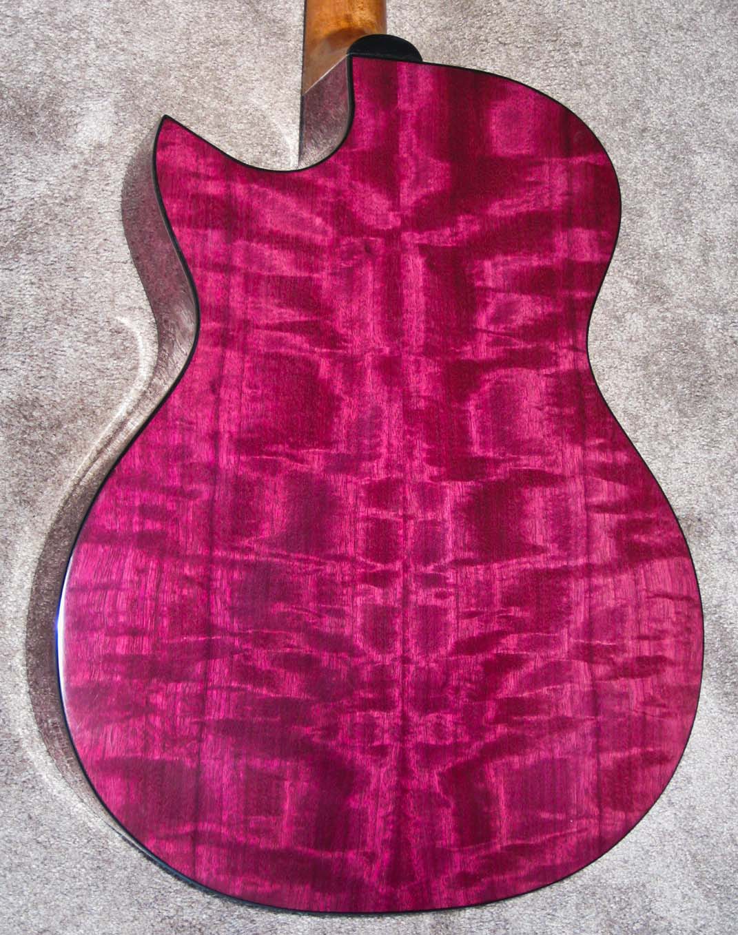 This wonderful wood is new to my shop in 2011. I built my first guitar with it out of a very plain set, and I love the look, sound, tone, and working properties of this wood. I have obtained some highly figured billets as well.