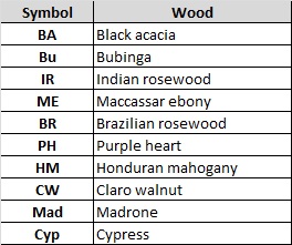 The graphic shown below gives my impression of the "voice" of various back and siedes woods.