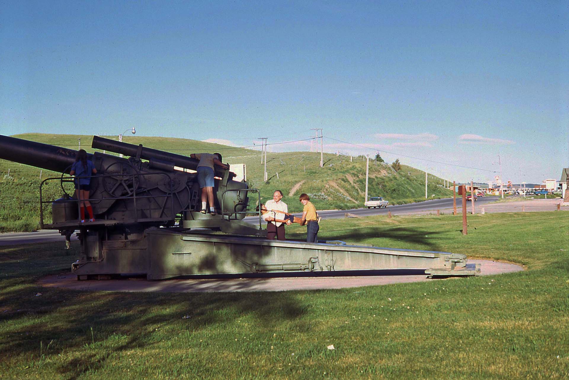 Lewiston, Montana: Playing on a big artillery piece (including loading Jon into the breach!) |