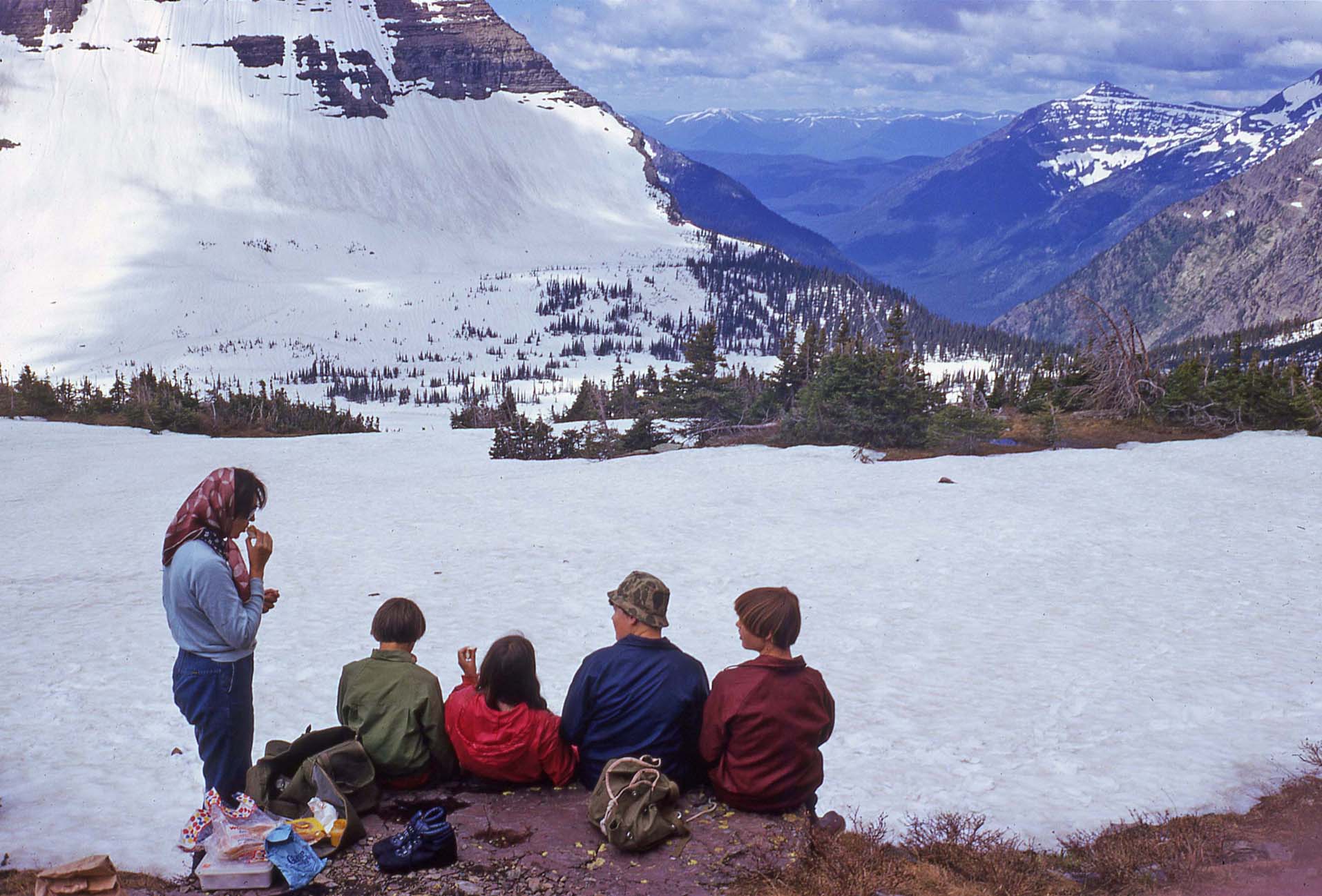 Background image is family group photo, Ready for the Galcier National Park trip, June 1974