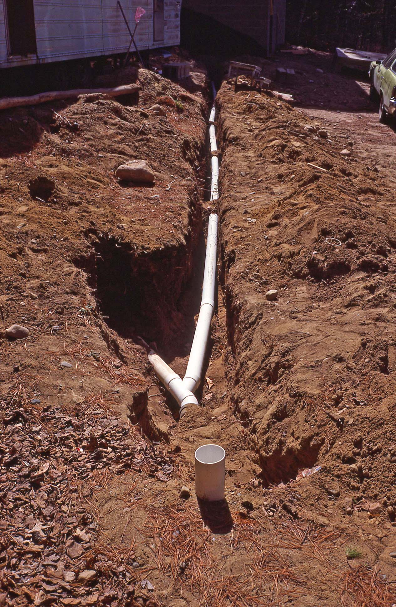 The trench to the cabin from the septic tank |