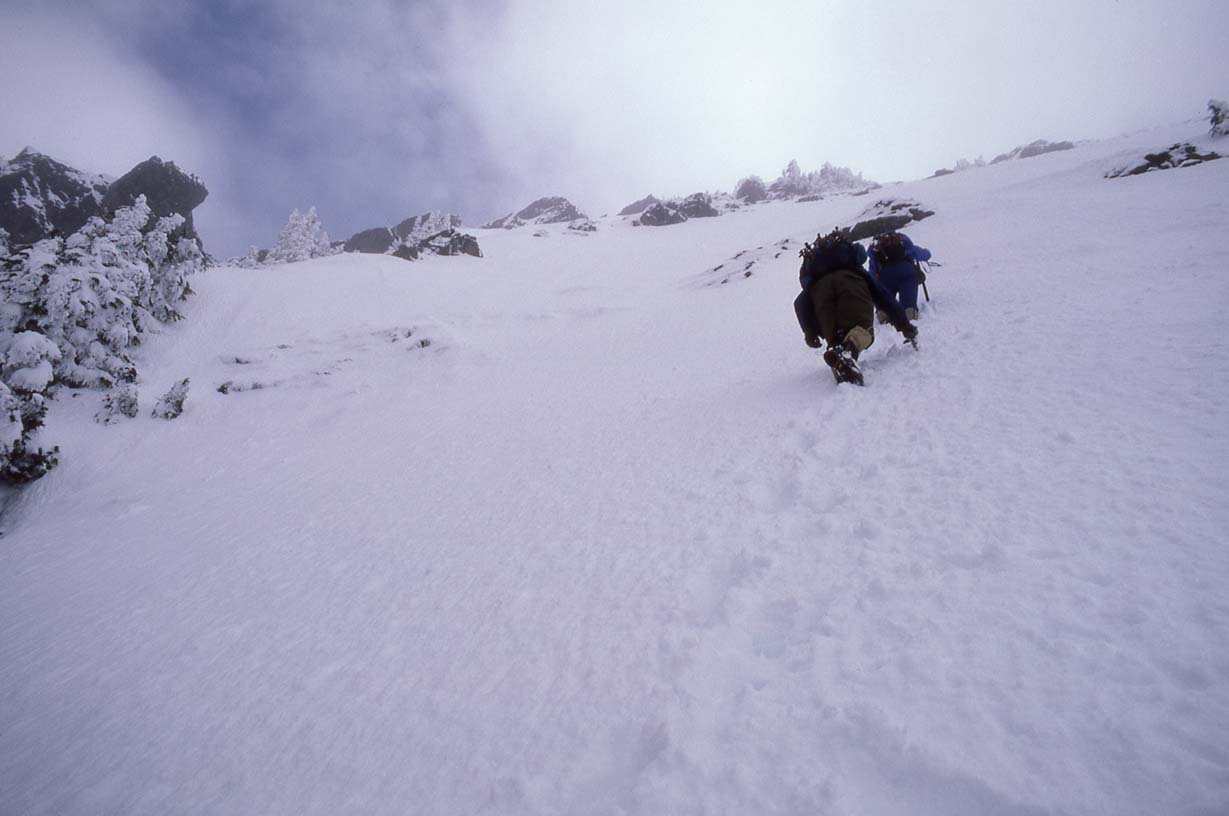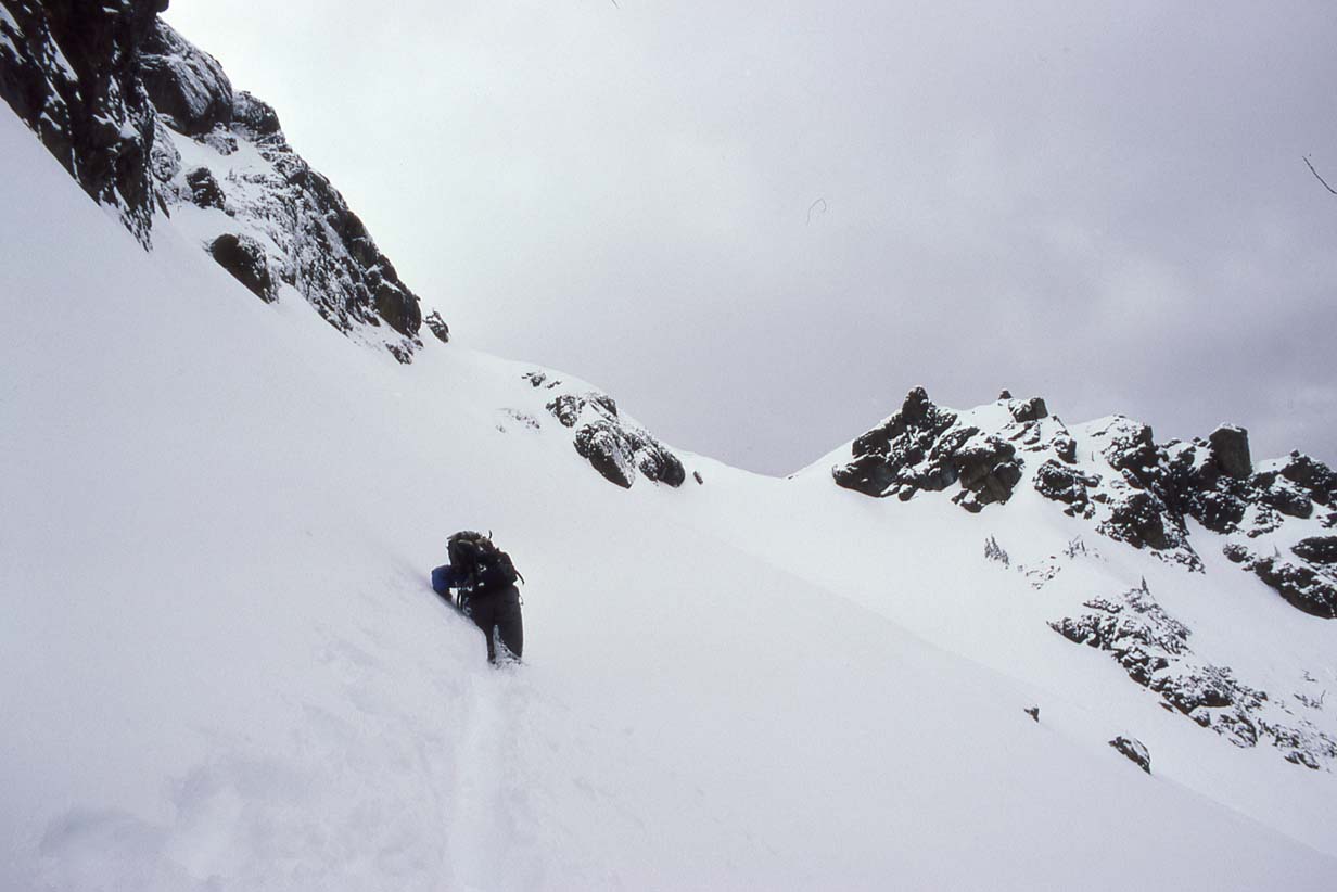 White Horse Mountain, February 1986, up the snow finger to the summit |