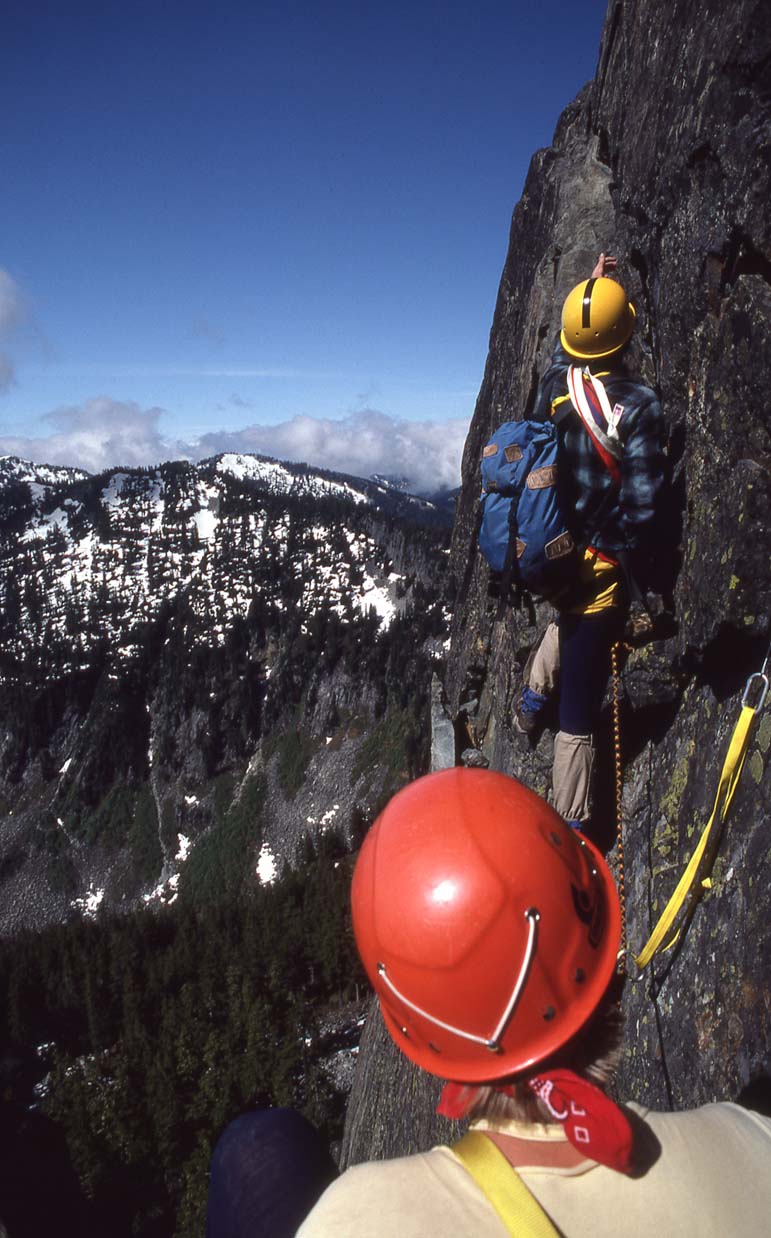 Background image is Paul Michelson on the South Face of the Tooth, Washington Cascades, 1986