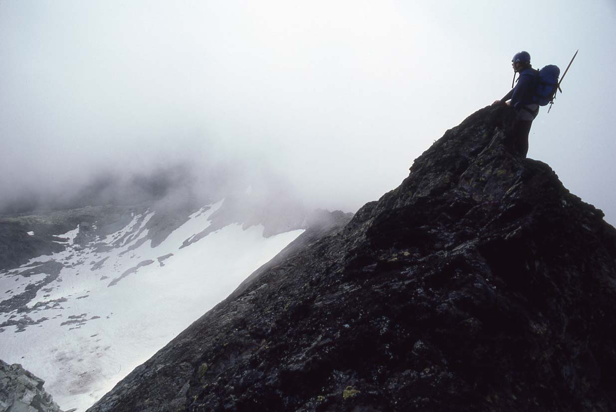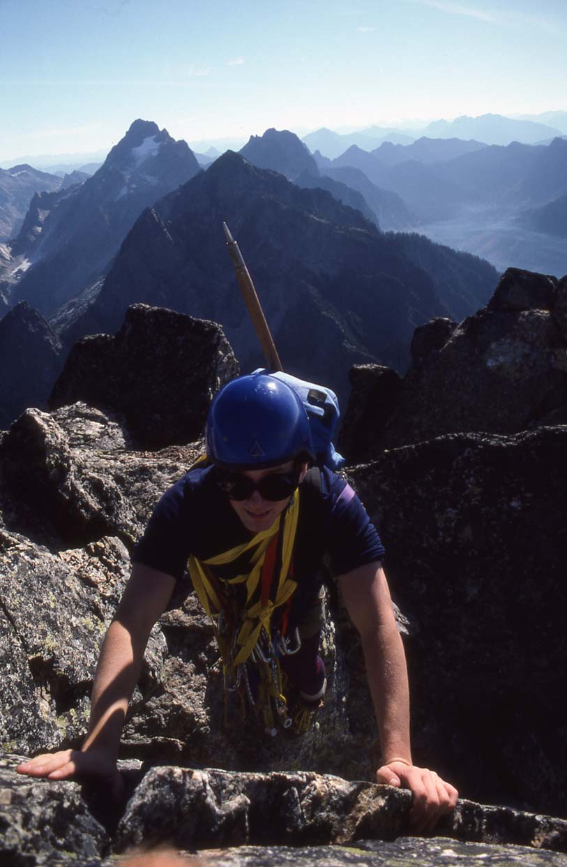 Forbidden Peak, West Ridge, Aug-1988, me on the summit ridge |