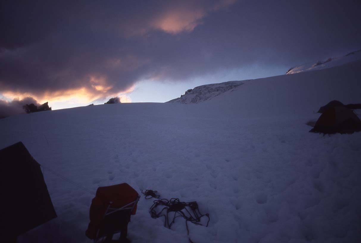 Dawn, Ingraham Glacier, Feb-1987, winter ascent of Mt. Rainier with Rob Freeman. |