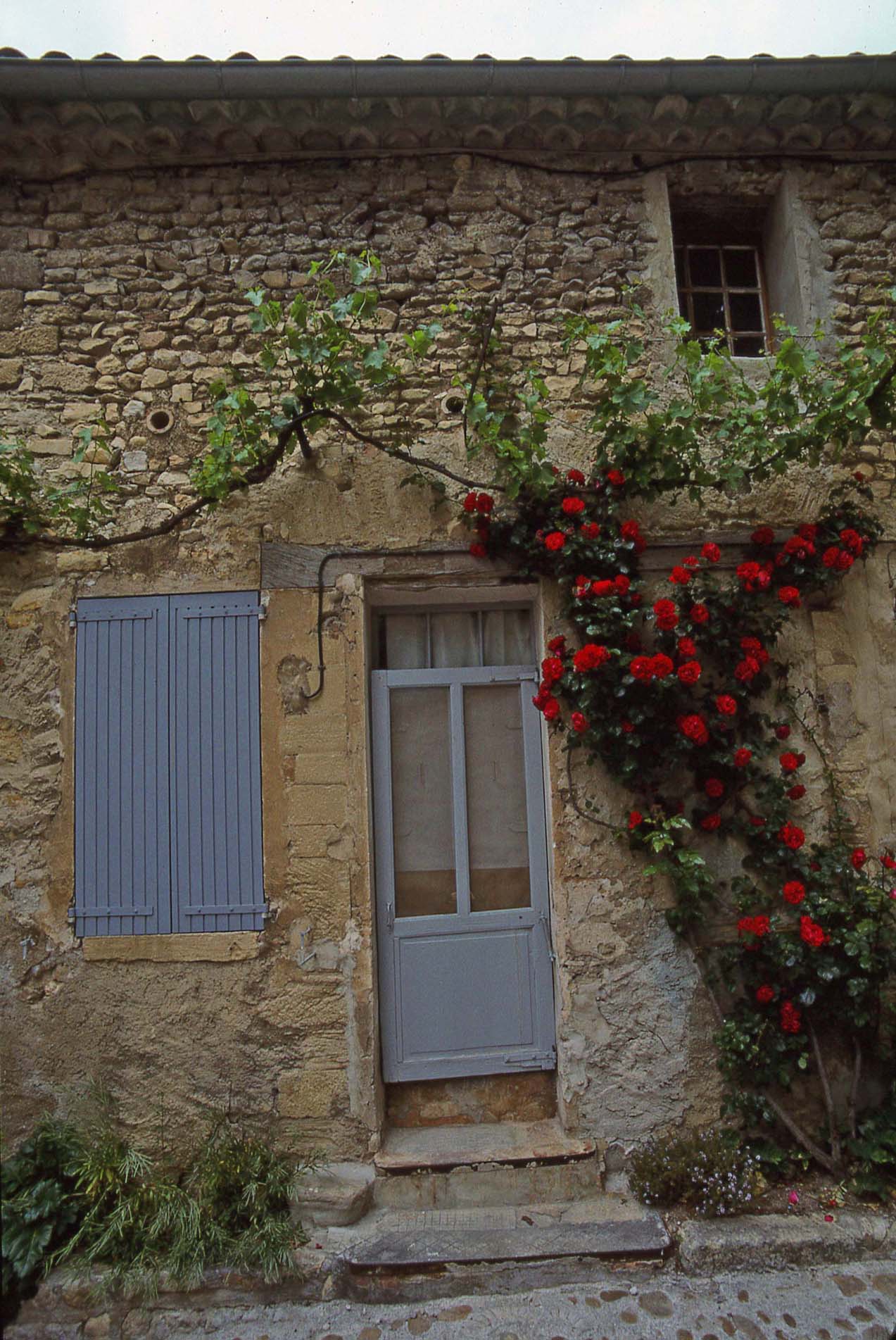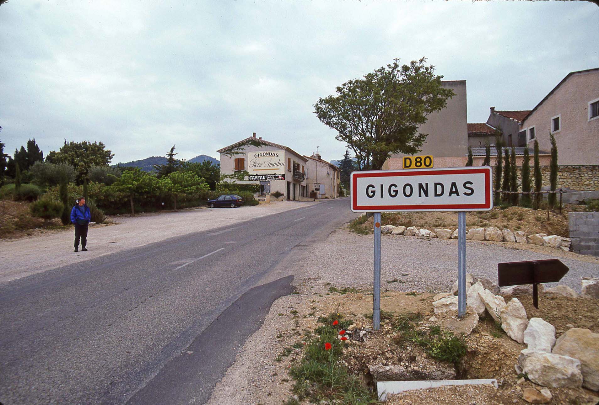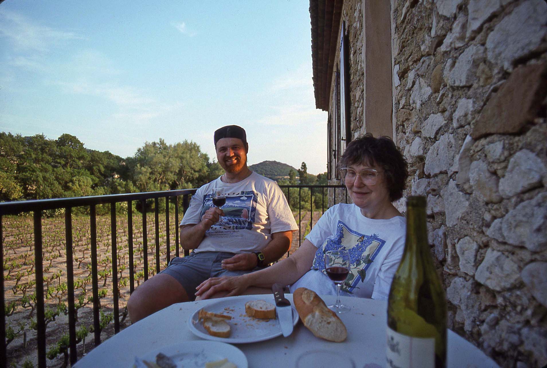 Background image is house and vineyard in Gigondas May 1997