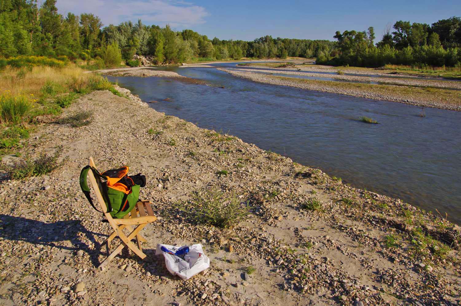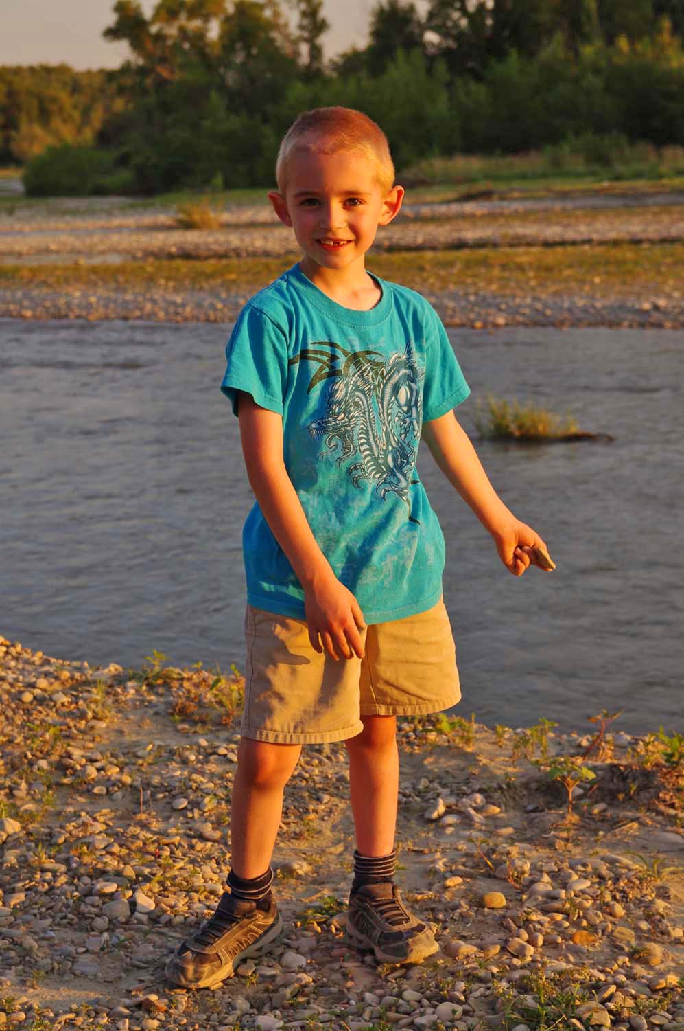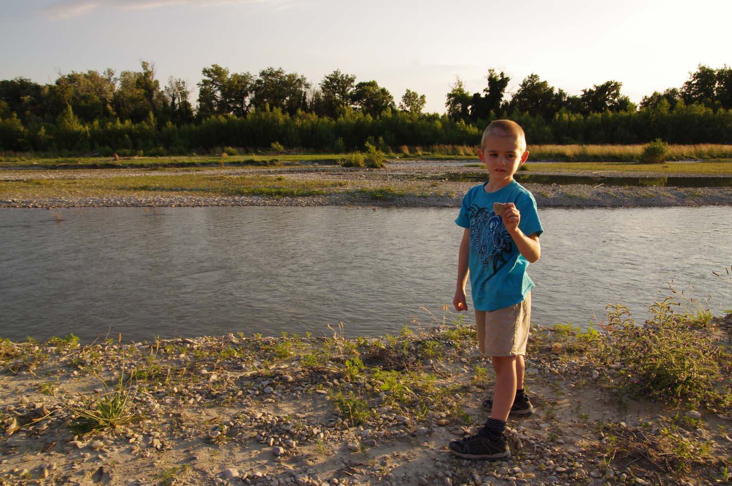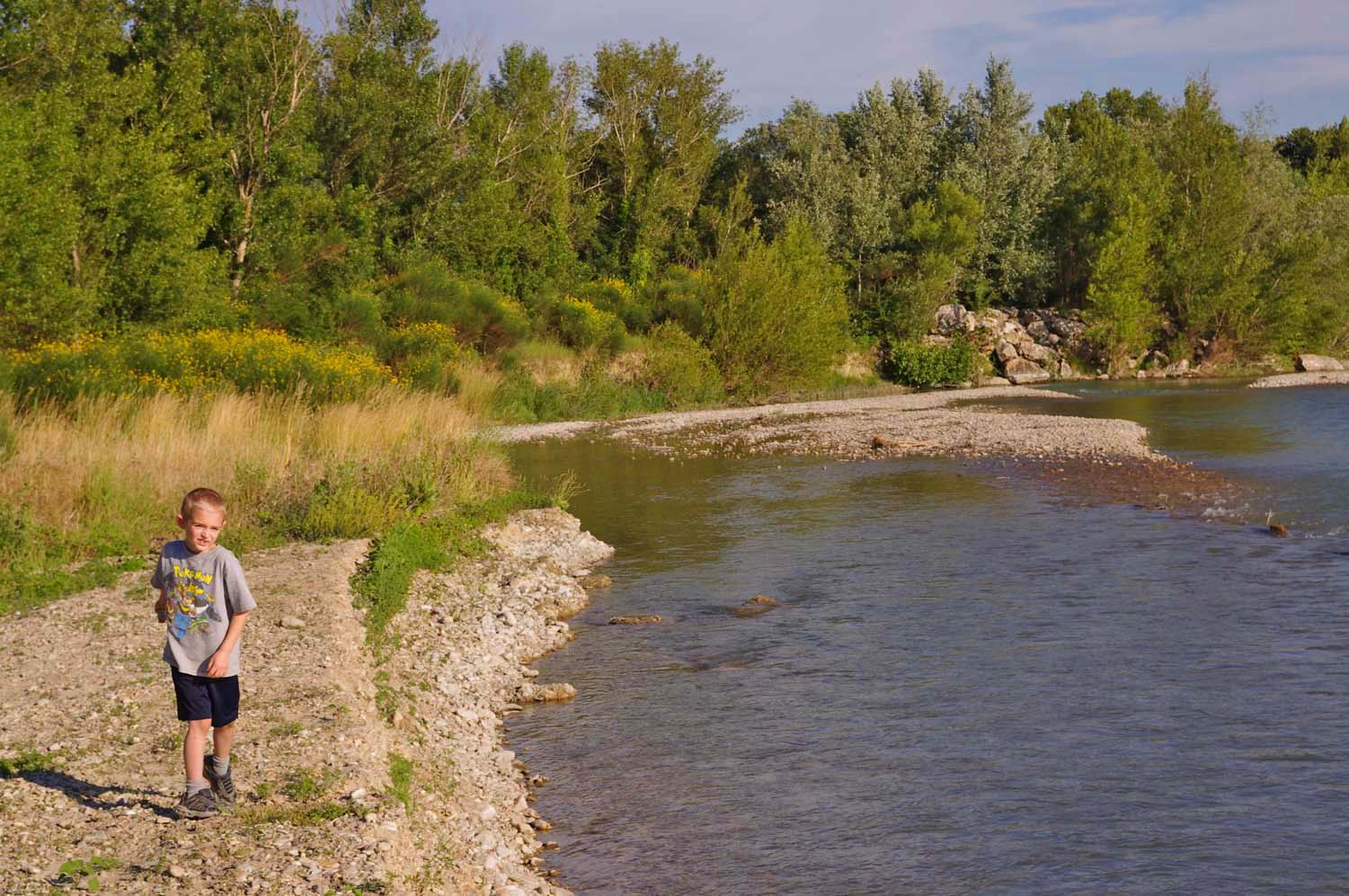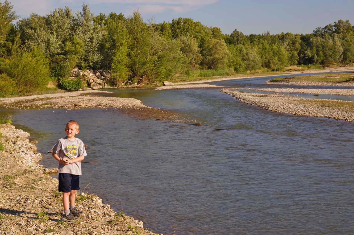 After dinner, Jamie and I went back to the Ouveze for more rock-throwing |