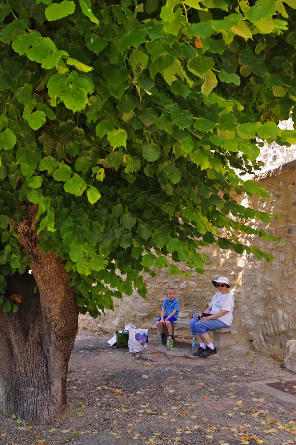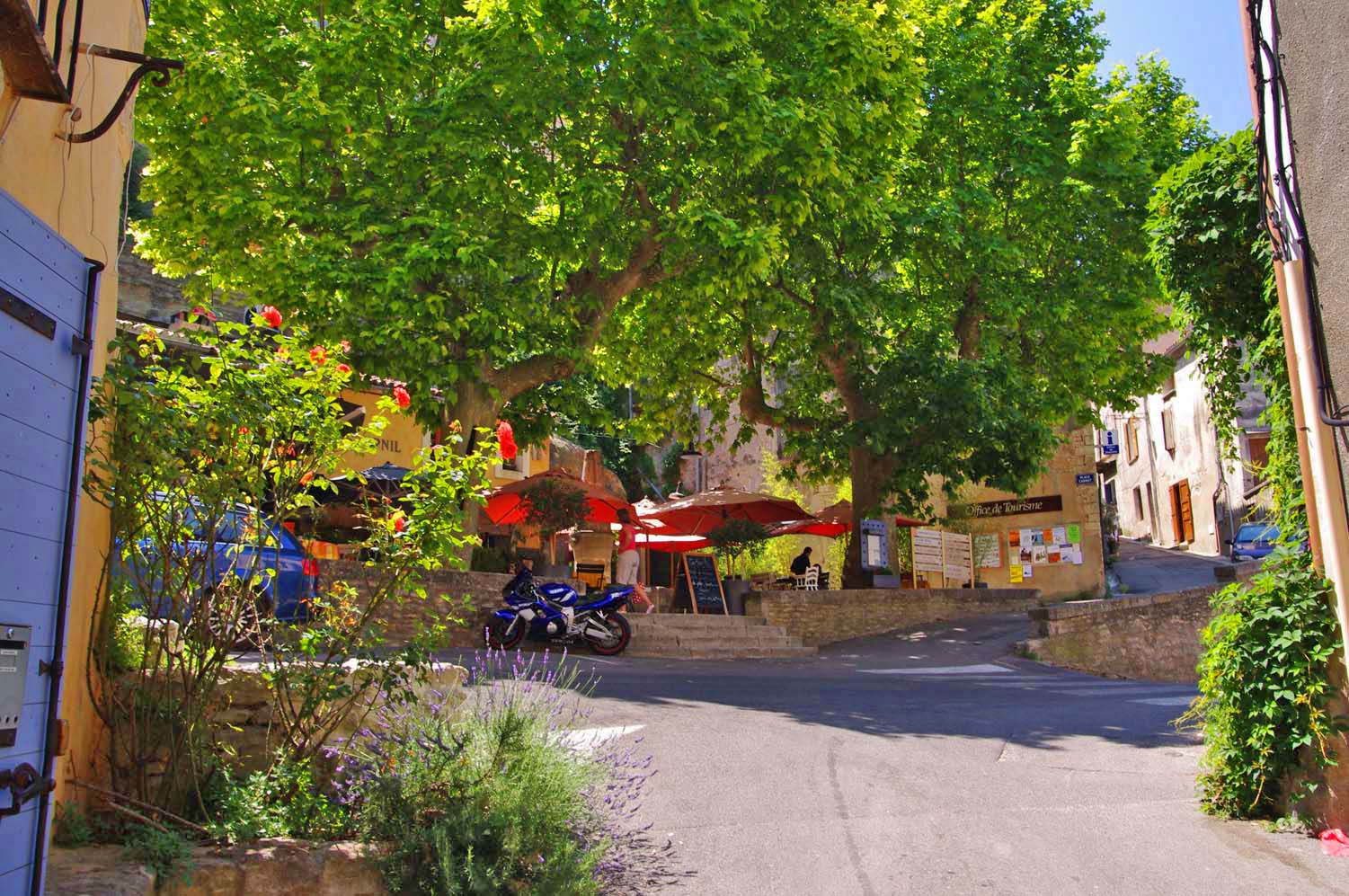 Lunch at a beautiful shady spot in the center of the tiny village of Roaix, near Vaison |