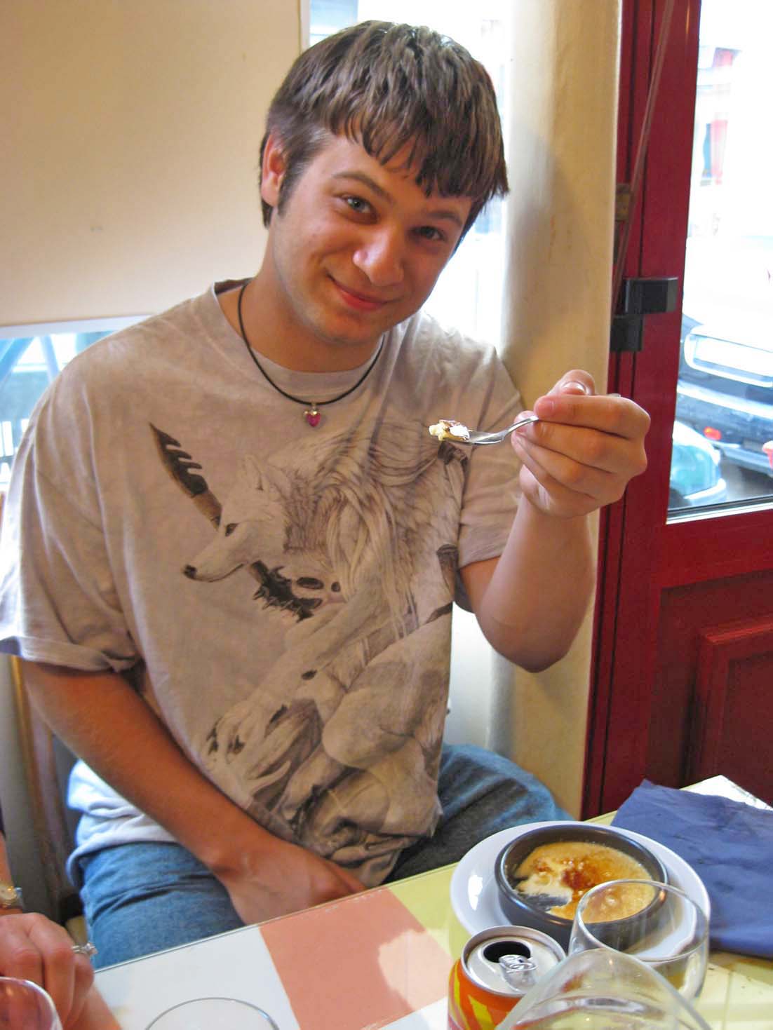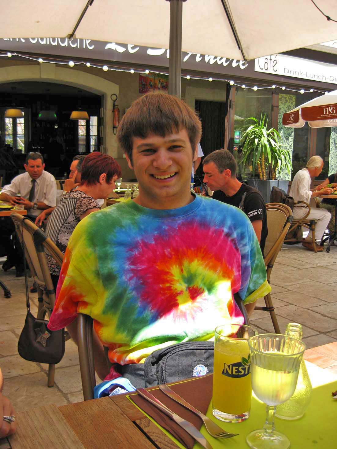 Jamie with his new favorite drink: Orangina |