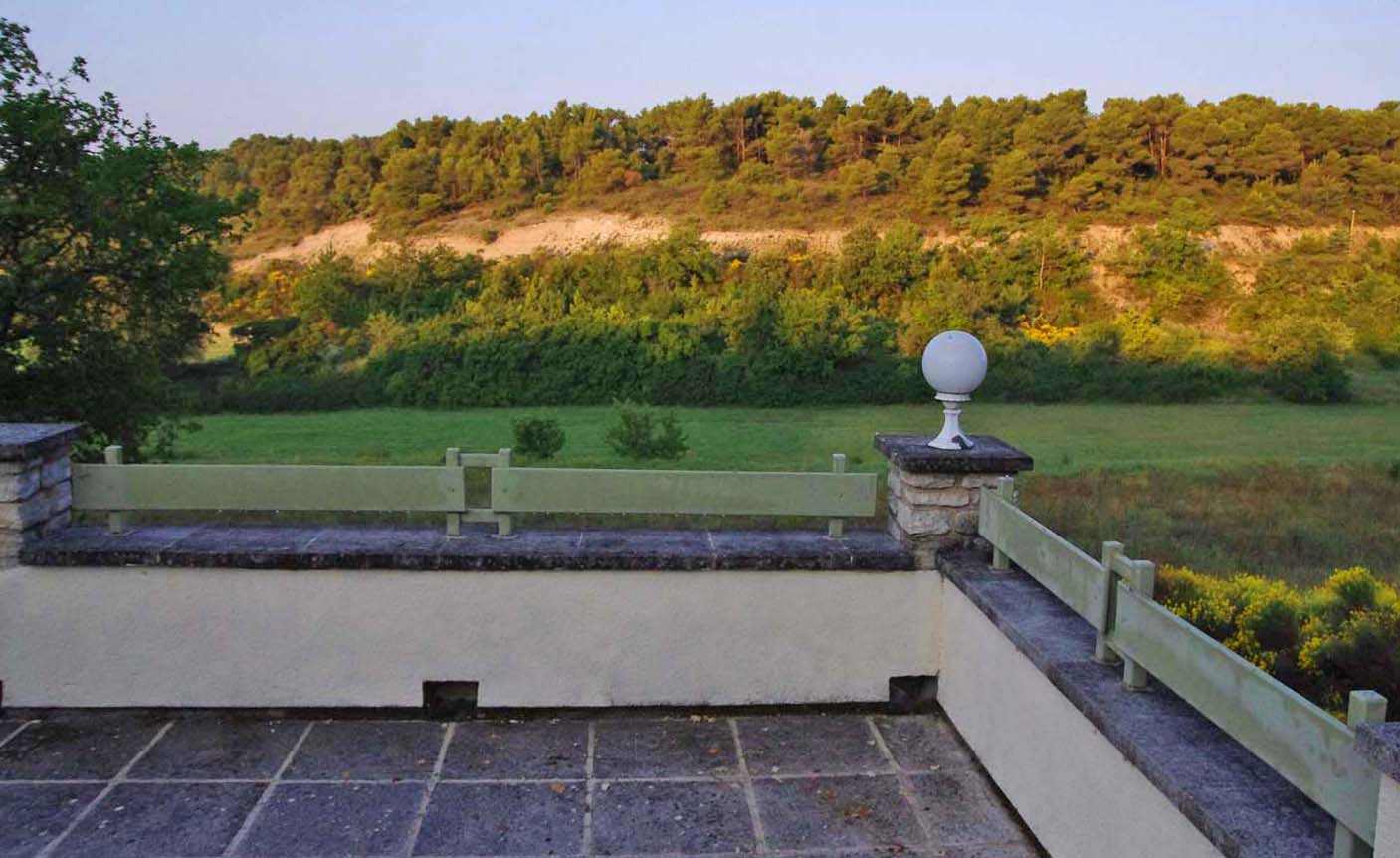 A panorama of the back side of our gites from across the little valley it sits in.
