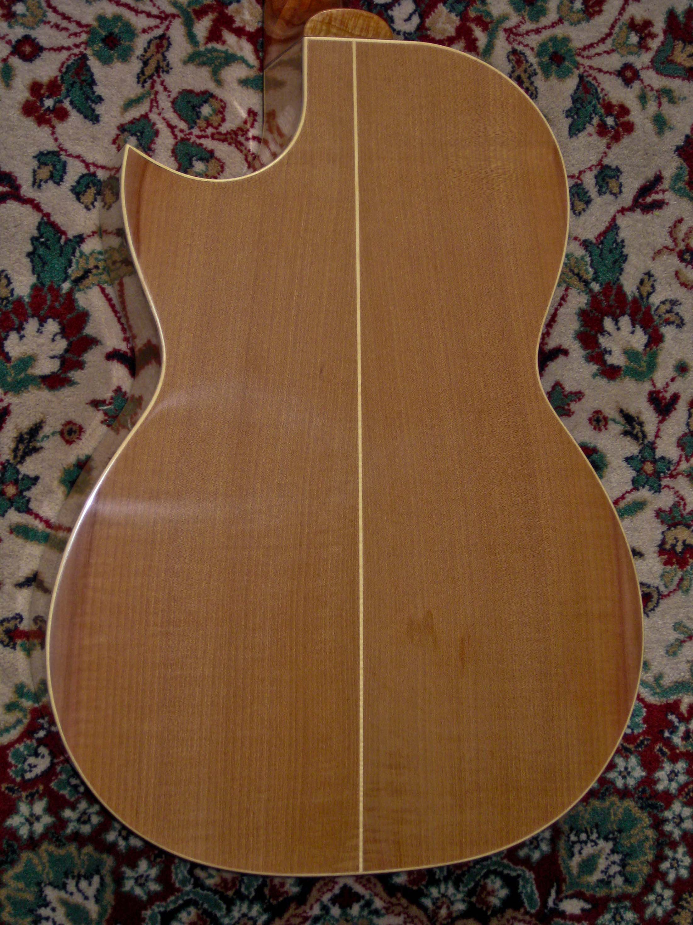 Highly customized Size 1 guitar in European spruce and Pacific madrone (Arbutus menziesii)