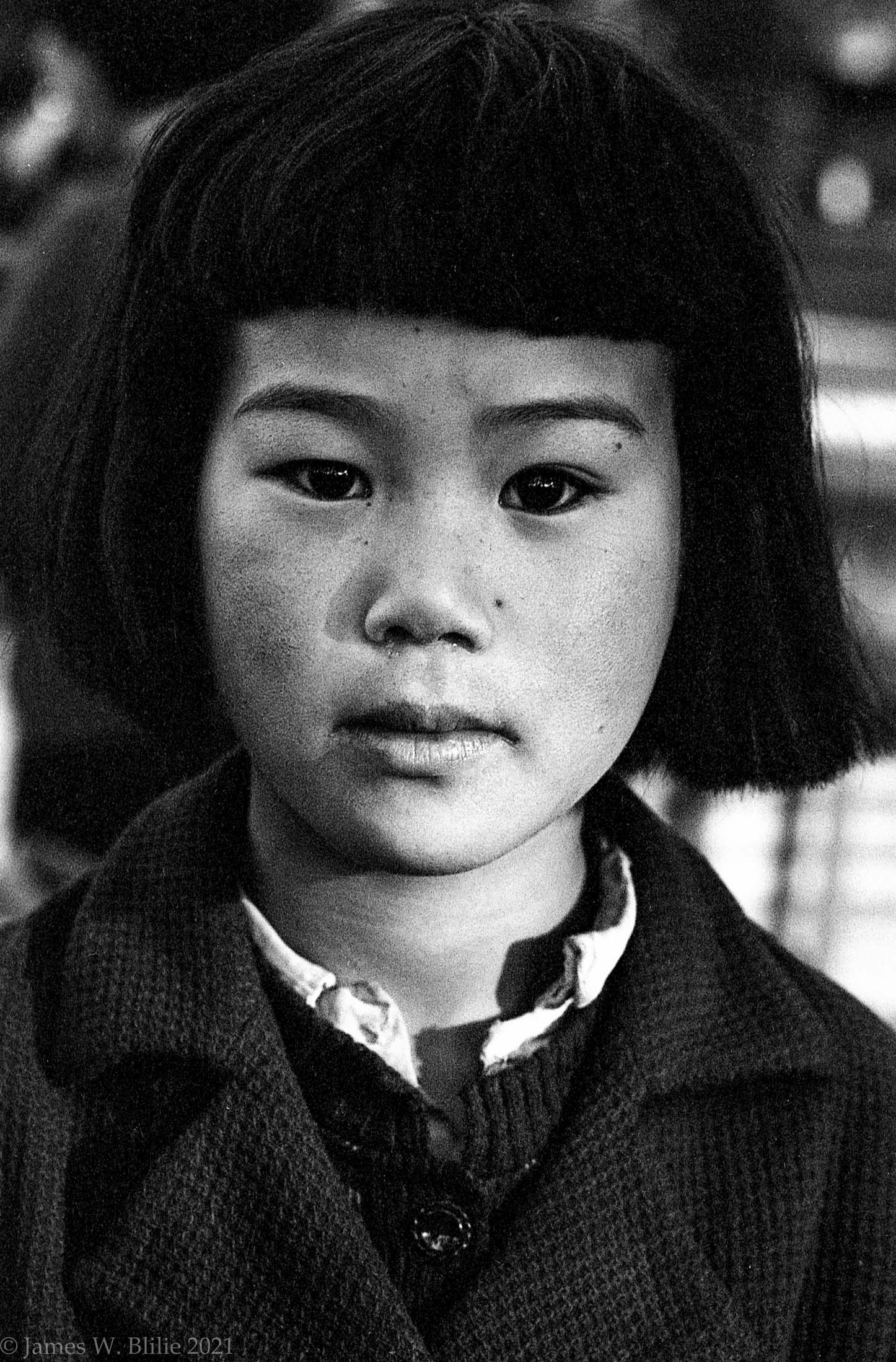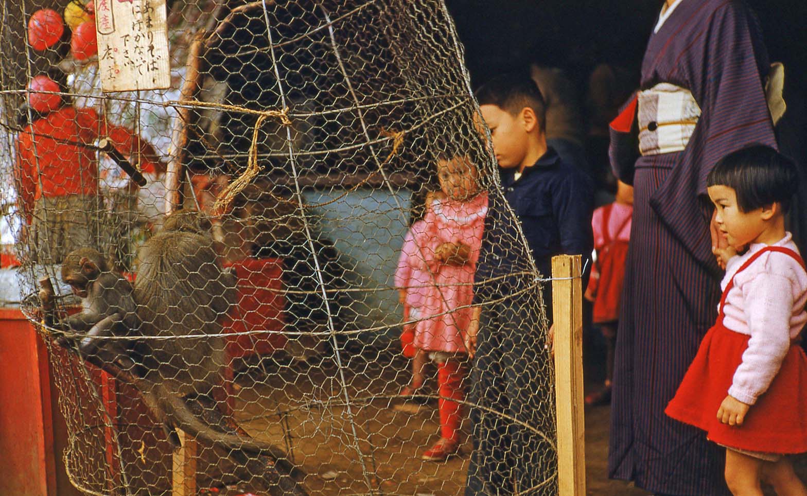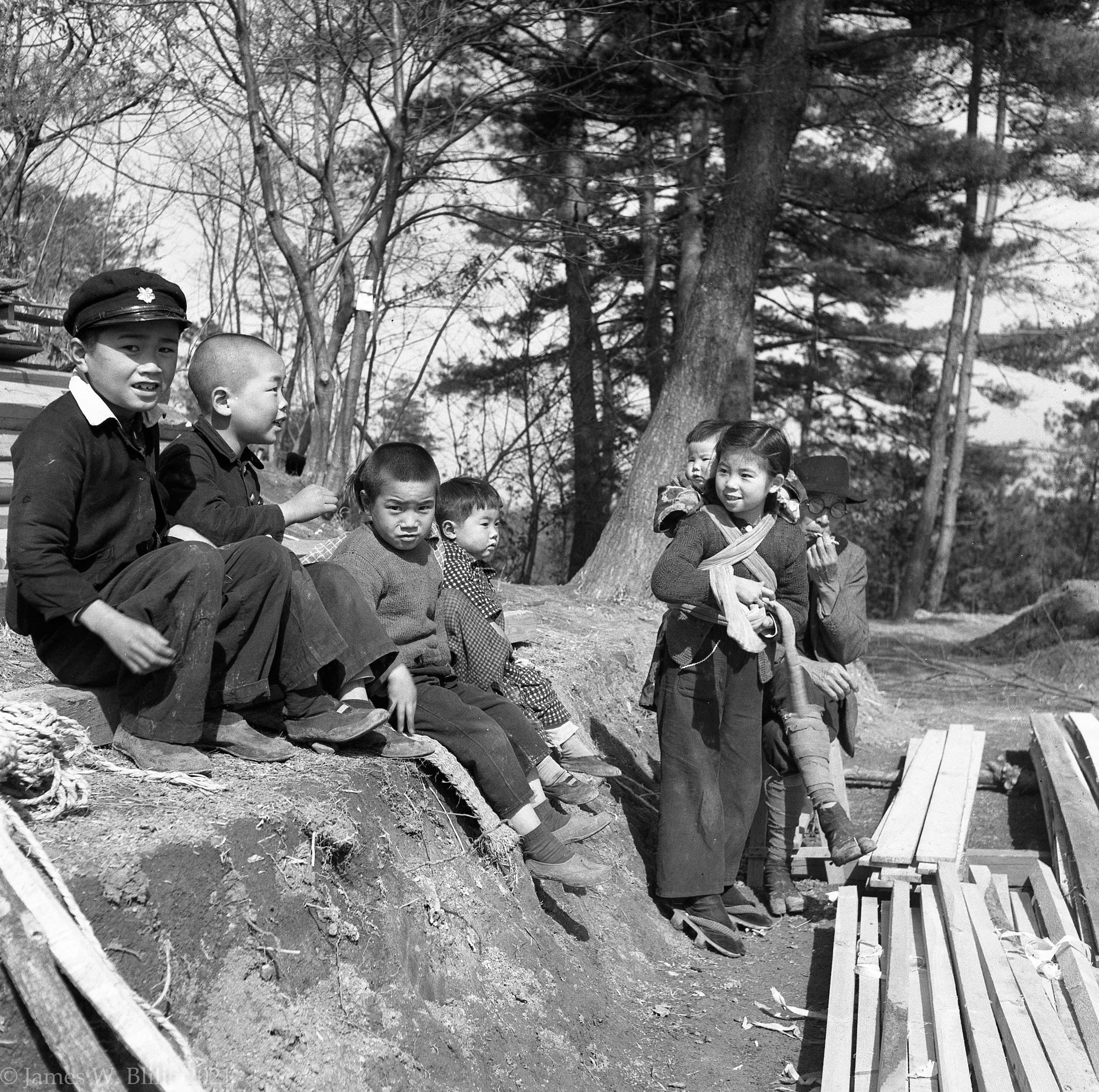 Background image is: School children, Japan 1952 or 1953