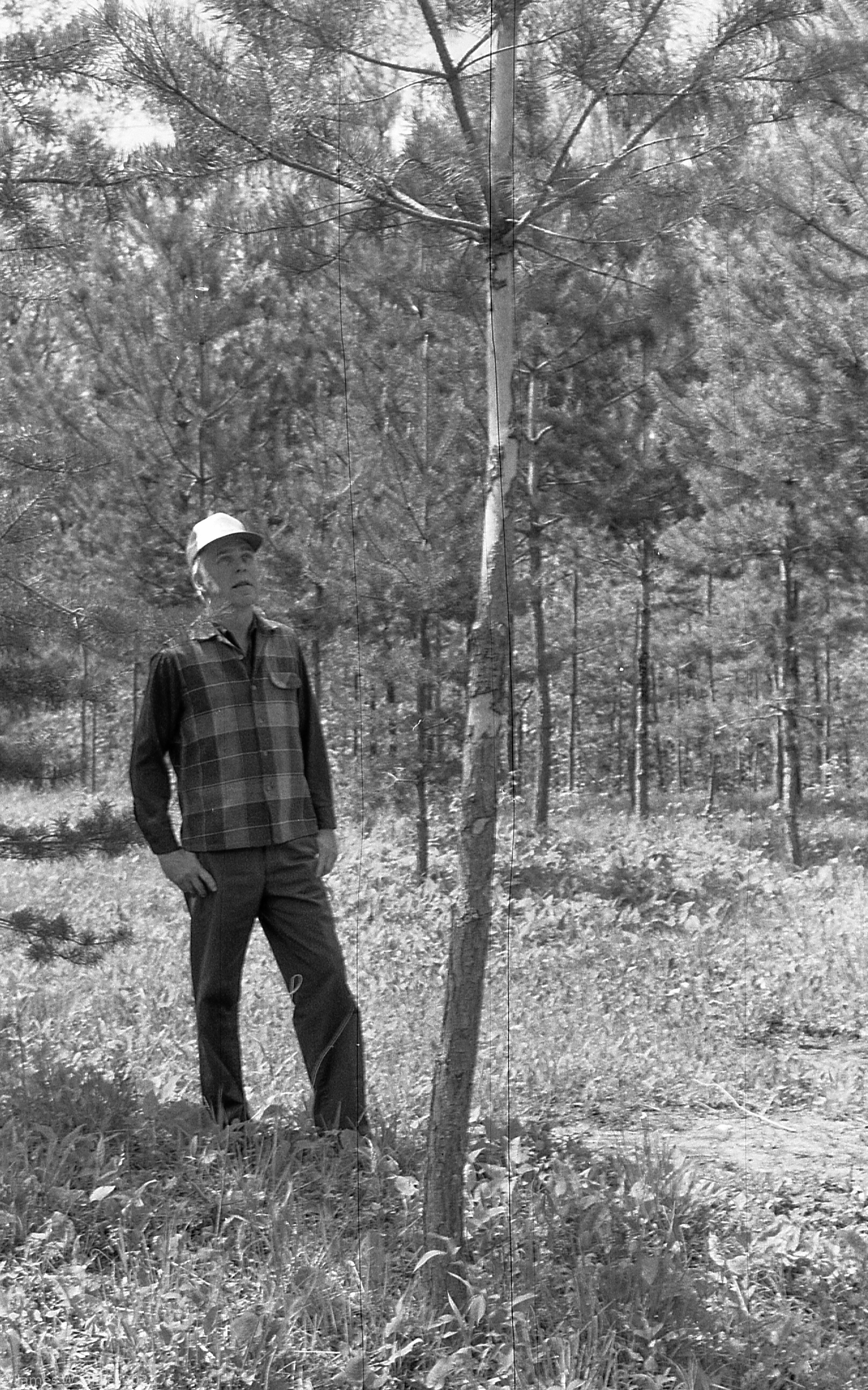 1983, Warren Herman on his tree farm near Mitchell Lake, MN |