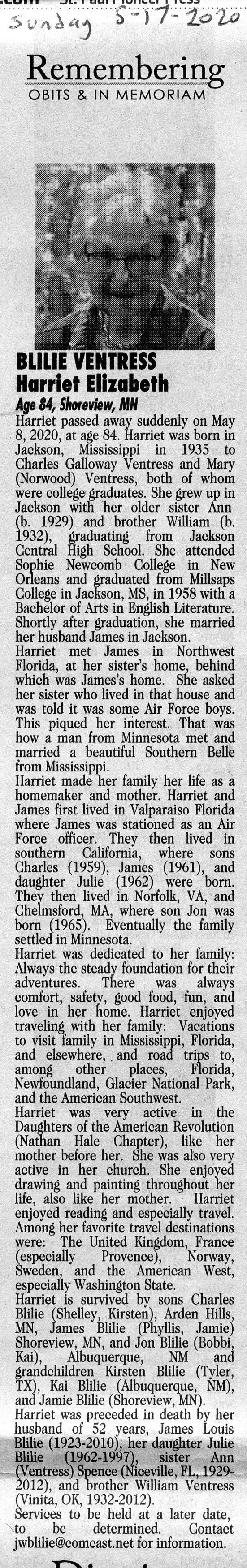 Elizabeth Ventress Blilie, 84, Shoreview, Minnesota