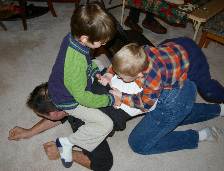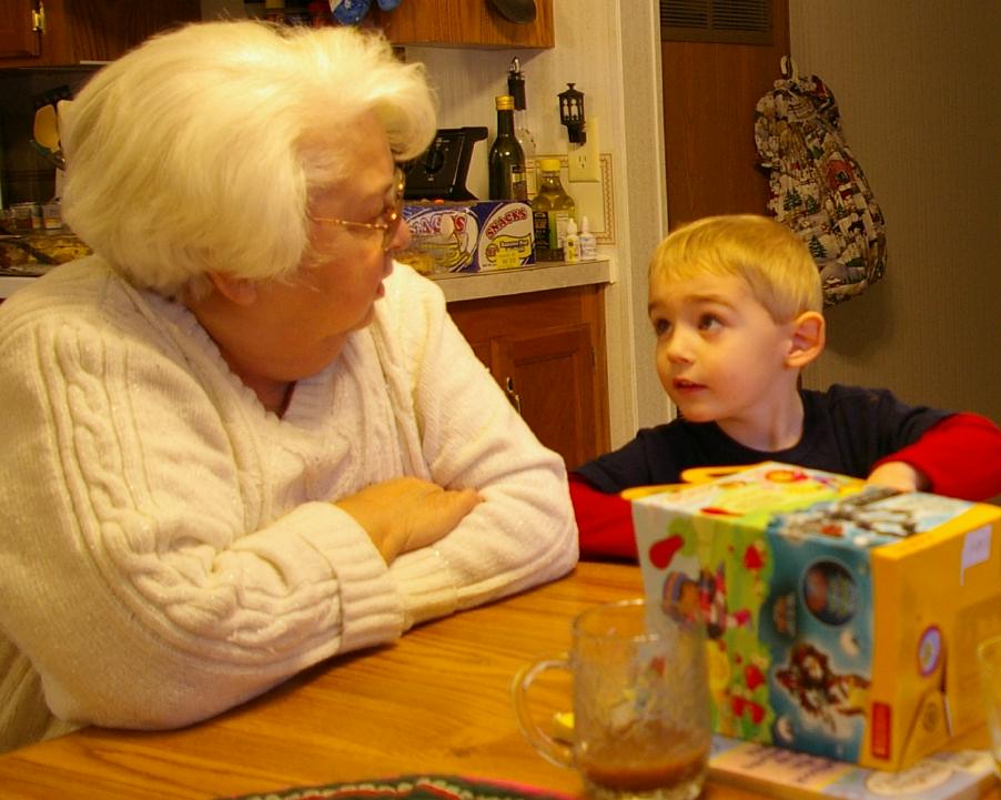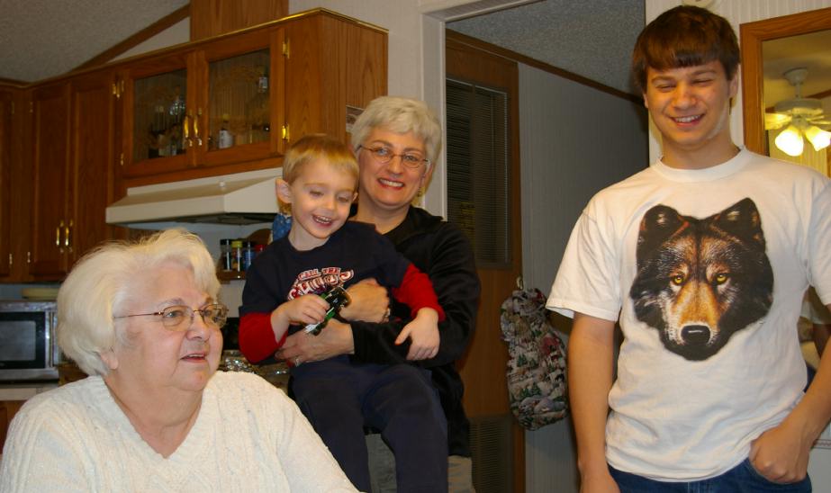 Wyatt with his brother Tom, his Grandma Lolly, and Jamie telling Phyllis "give it back!" |