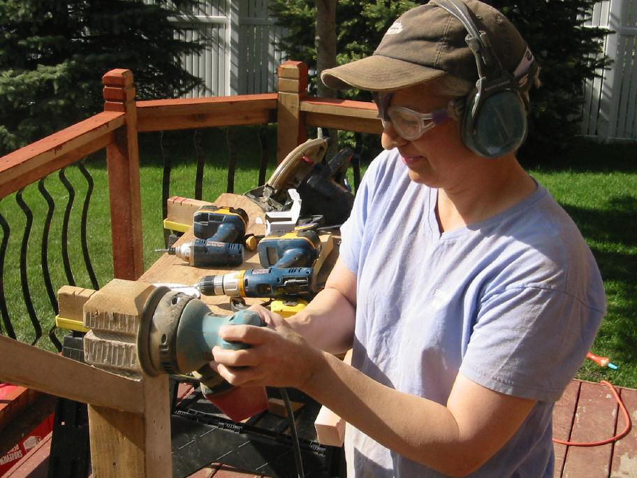 Tearing down the deck, sanding |