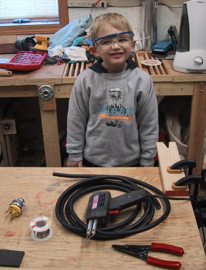 Jamie helping Dad in the shop |