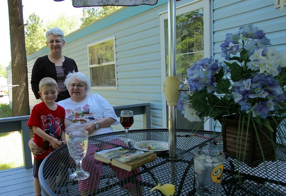 We had my Mom over for lunch on our back deck. |
