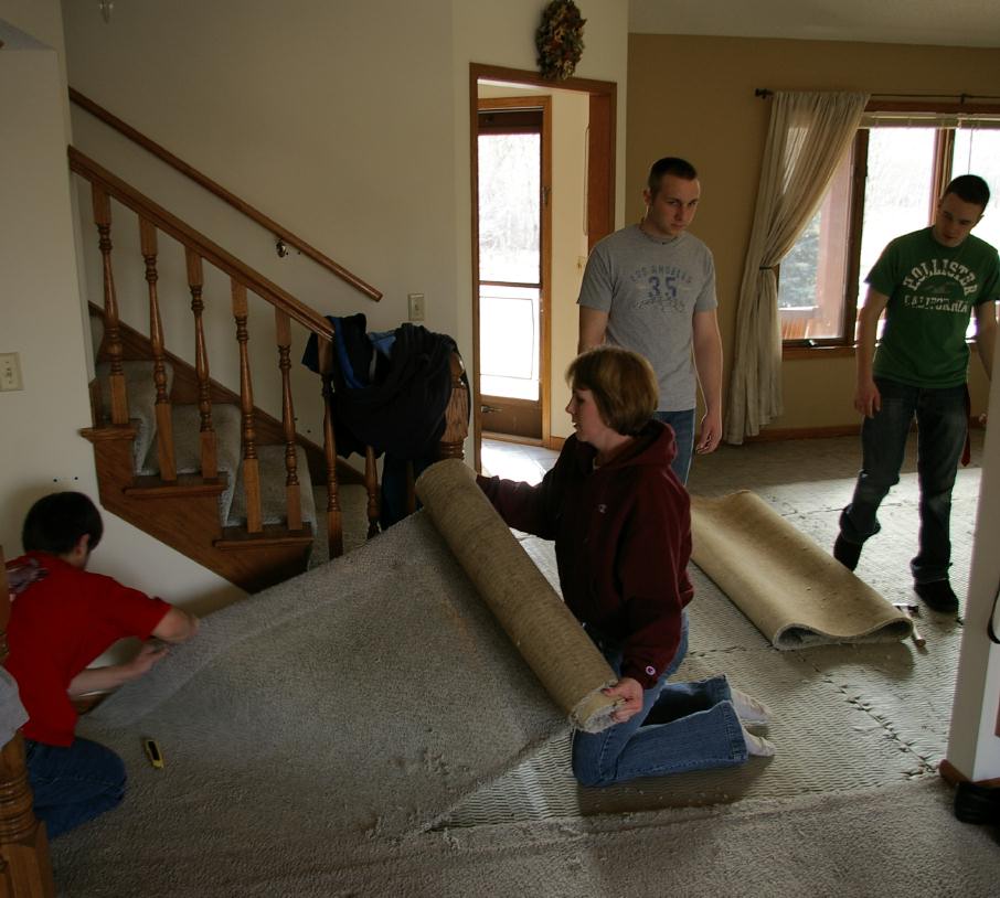 Removing our old carpet! |