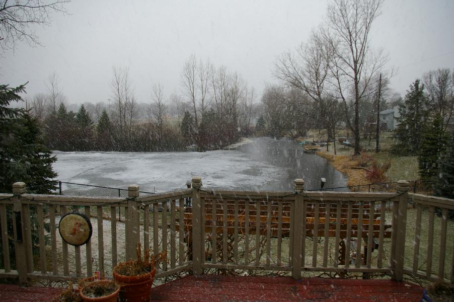Snowing in April! Our new (used) weight machine |