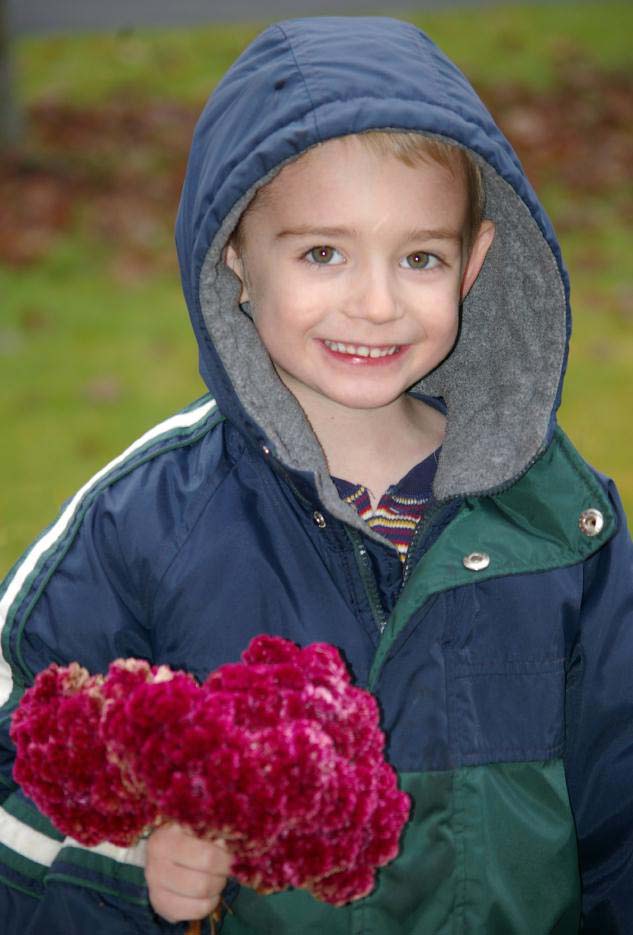 Jamie with a bouquet and in his Halloween costume |