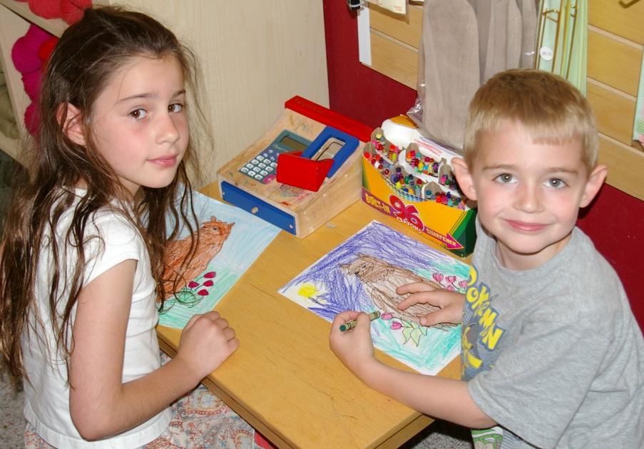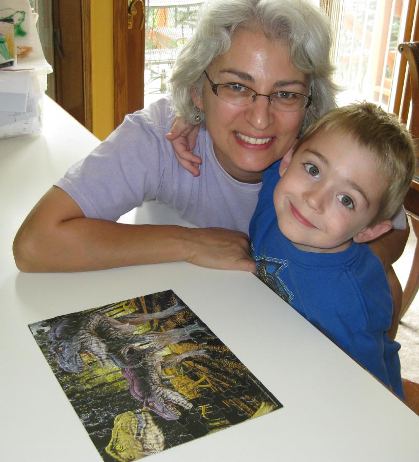 With Mom doing puzzles; with our friend Missy |