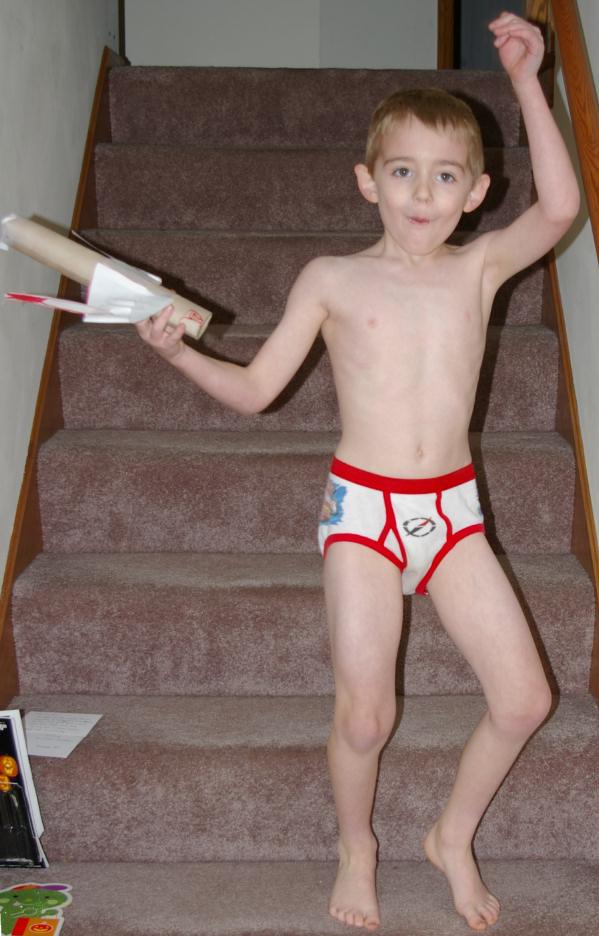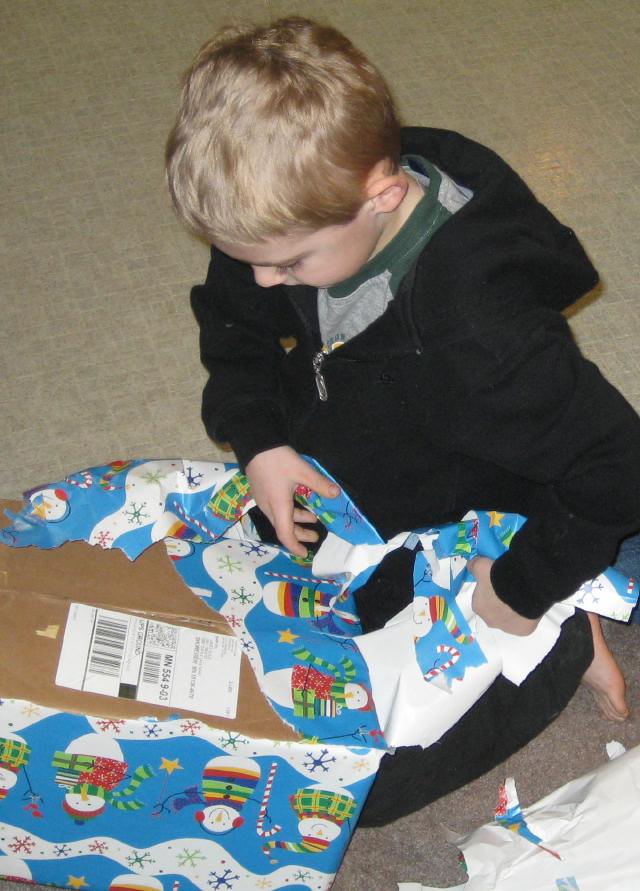 After Christmas: Jamie with his Tommie gun and cocoa |