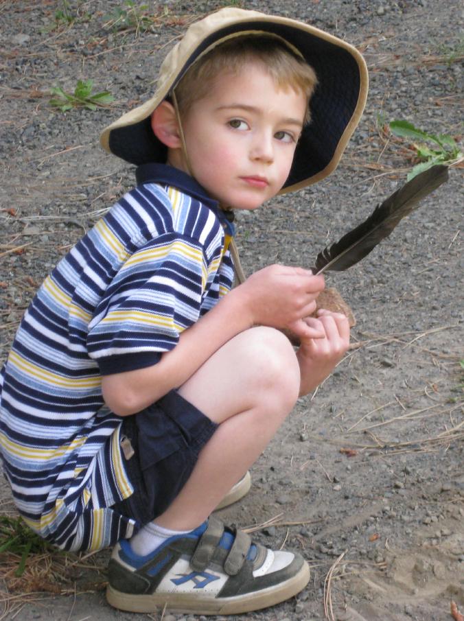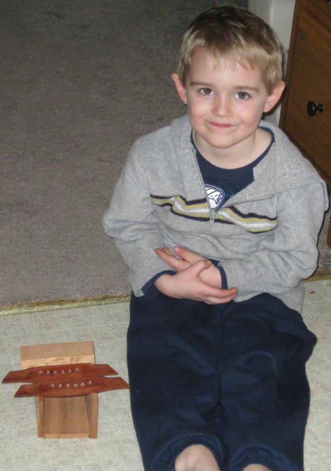 Jamie with a speller game and his bird collection |