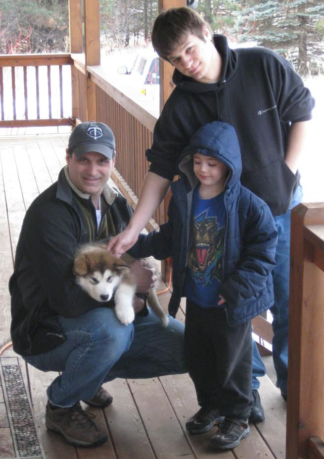 At Nannette and Jeff's house; With my brother Jon and his new Malamute puppy Cosmos |
