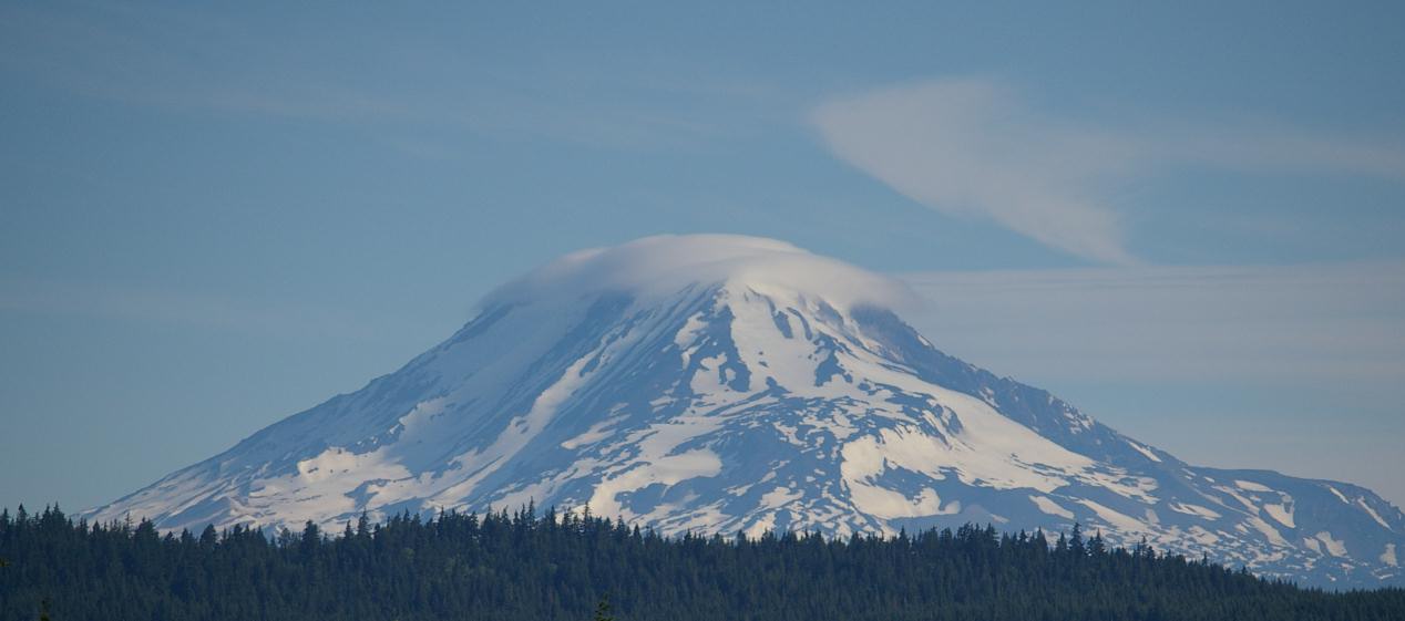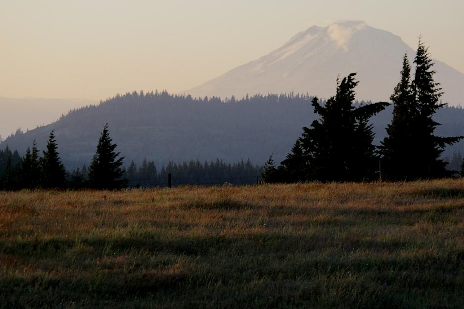 Last views of the mountains; last view of Multnomah Falls |