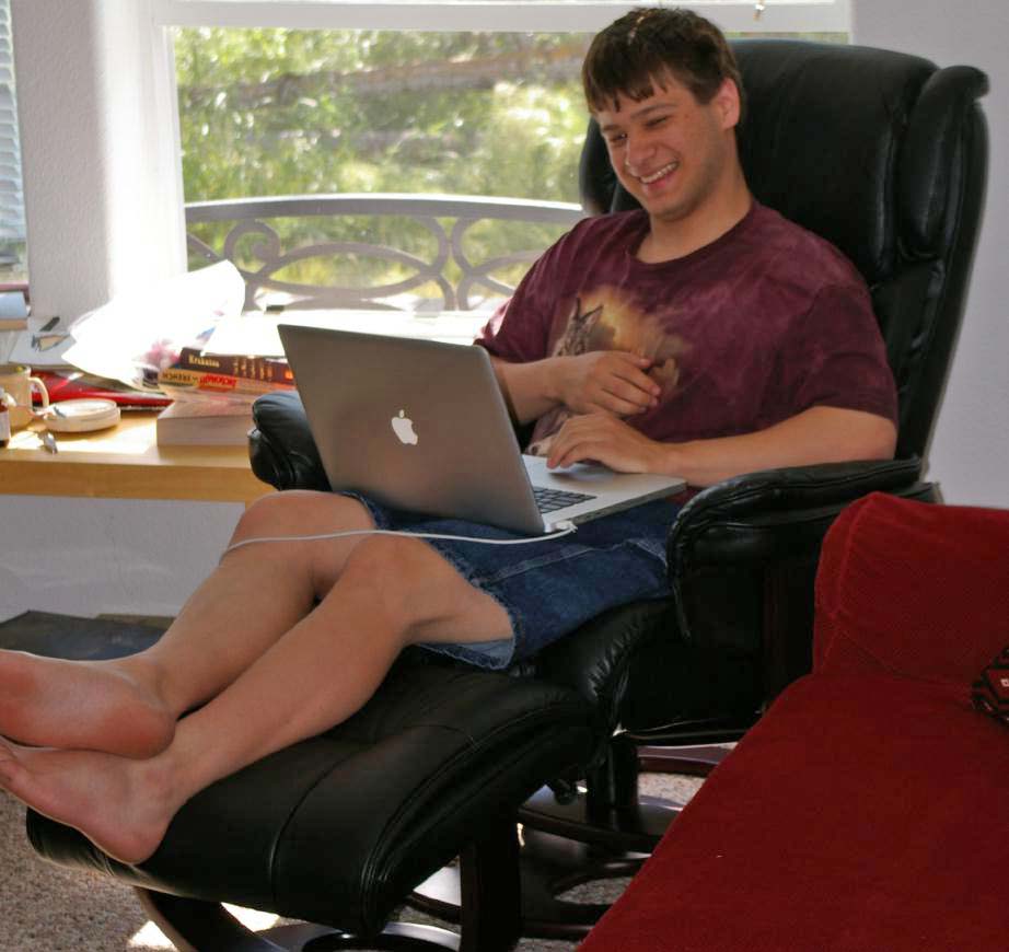 My new chair, Jamie's new bicycle helmet, the cats |