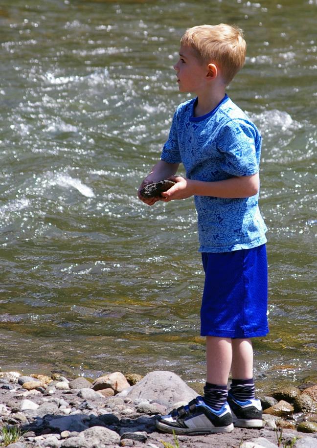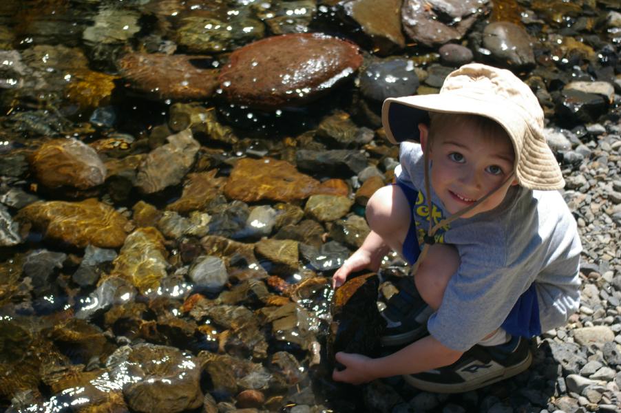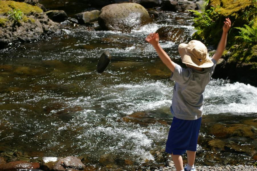Throwing rocks into the East Fork of the Hood River |