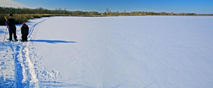 Snowshoeing on Poplar Lake, close to our home, Panorama |