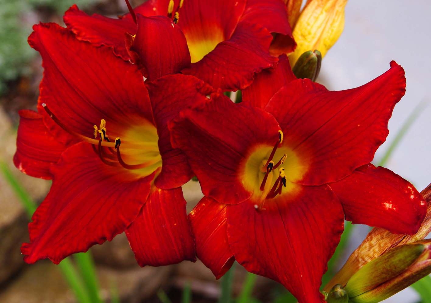 | A Panorama of our front garden, restored after the voles ate half of it ... | Rascal in his usual spot | |||