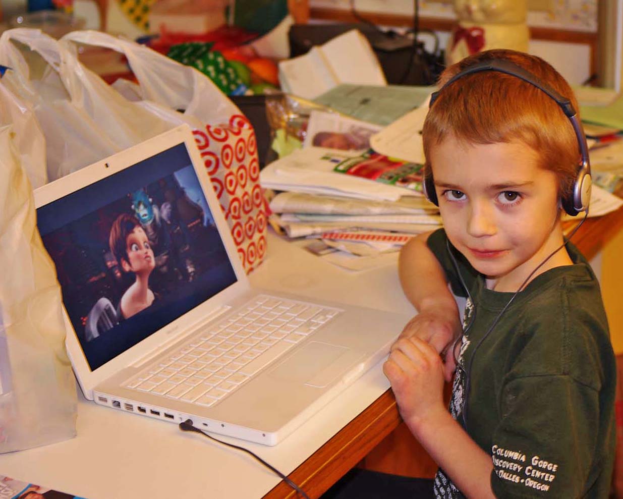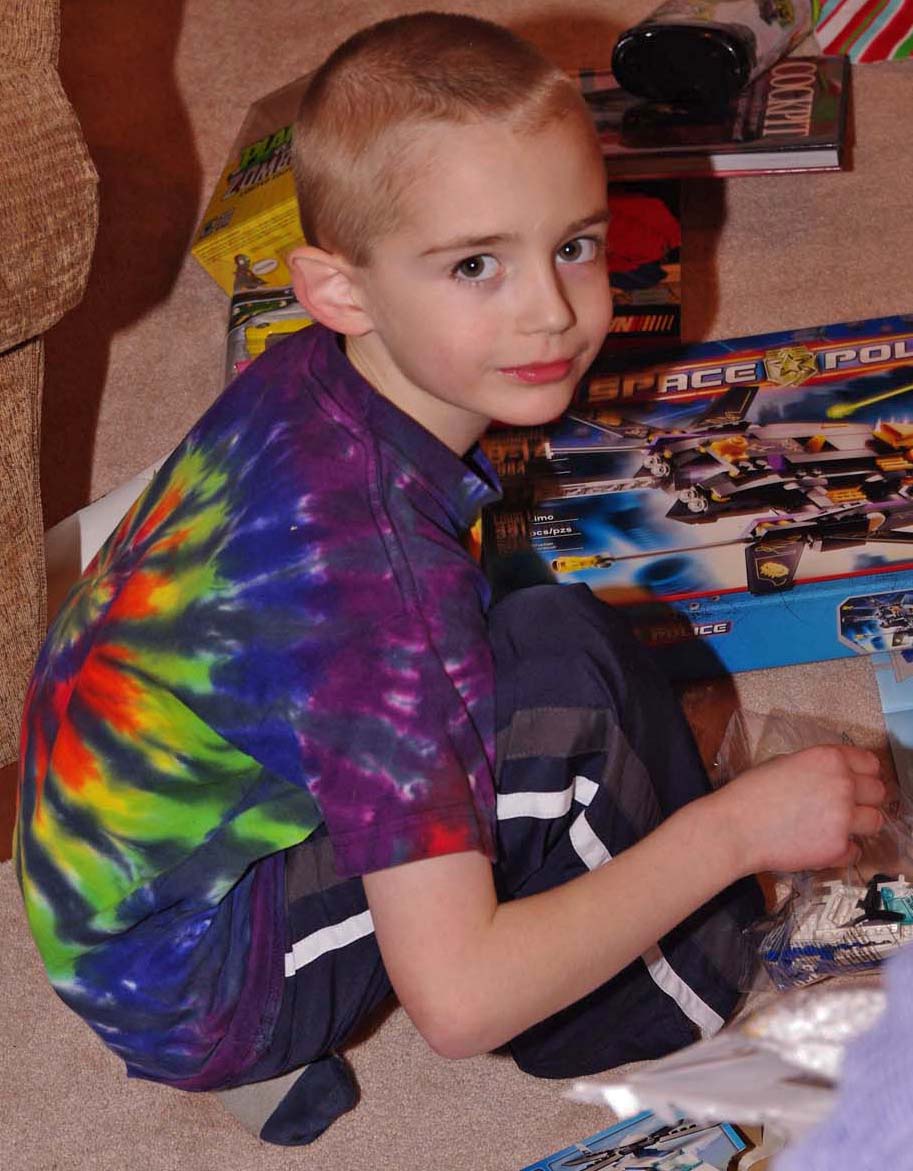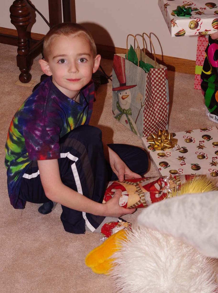 Opening gifts Christmas morning Jamie and his "flying UFO" |