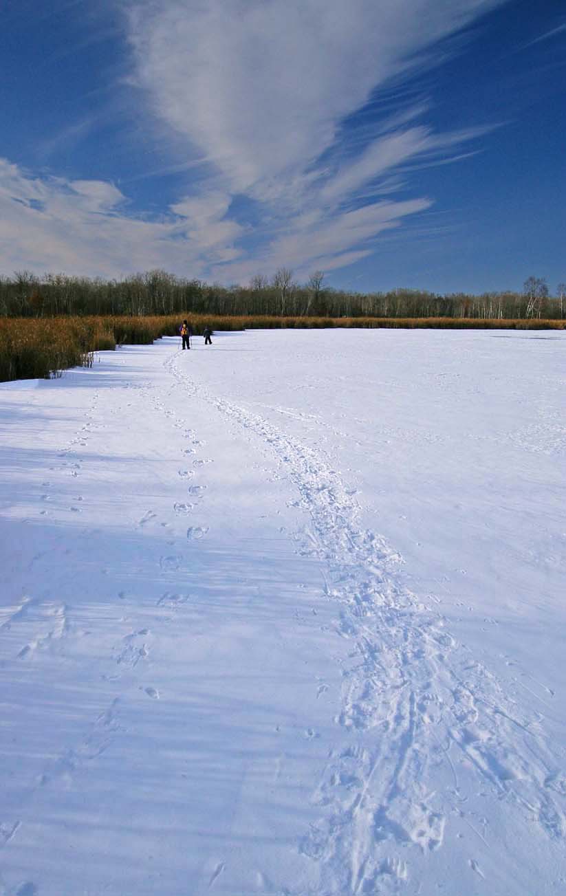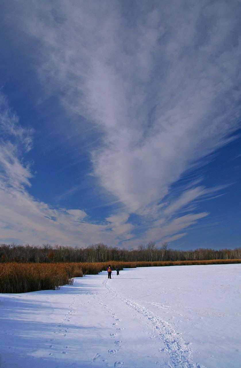 Snow shoeing in the Open Space (the beaver lodge again at lower left) |
