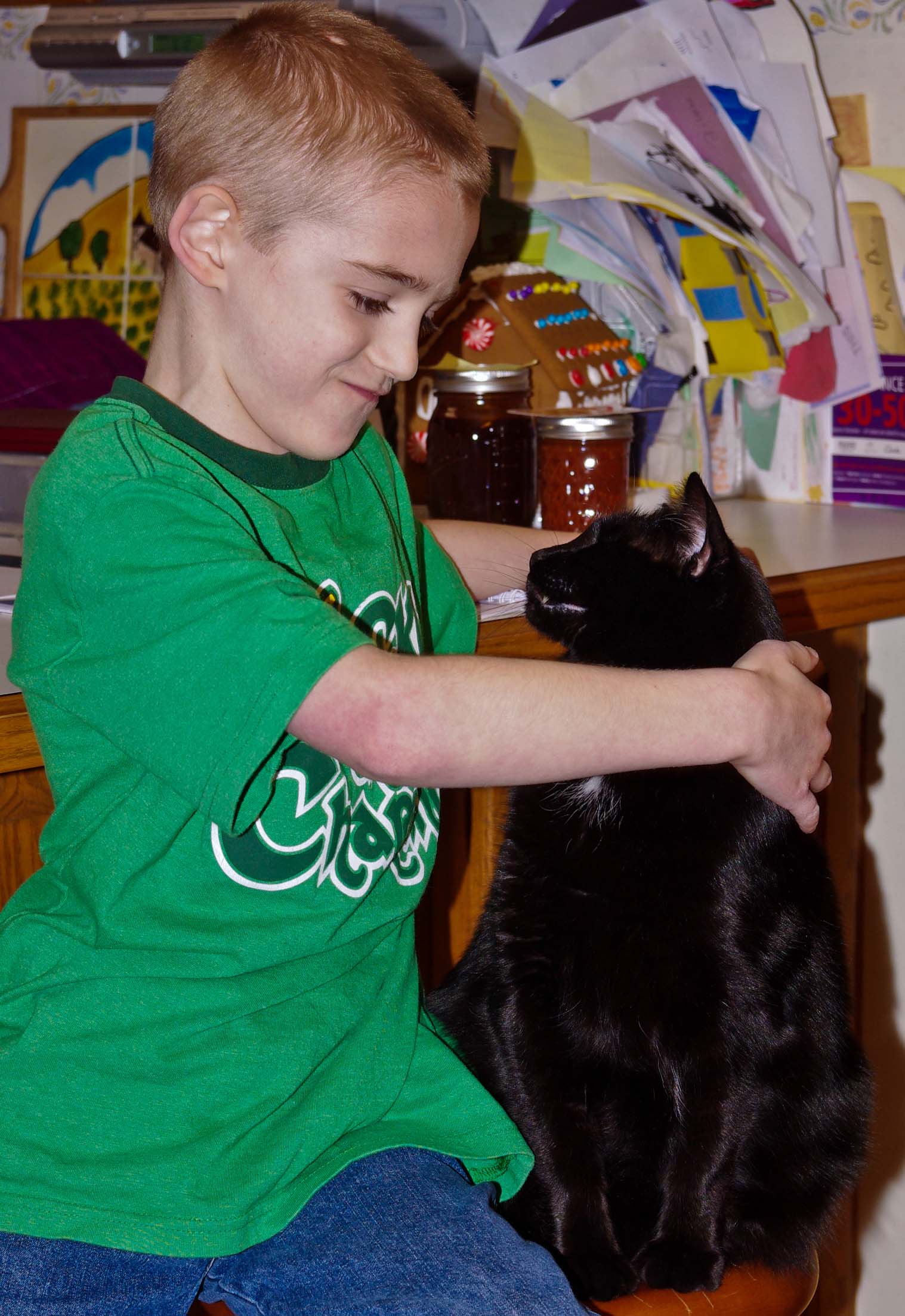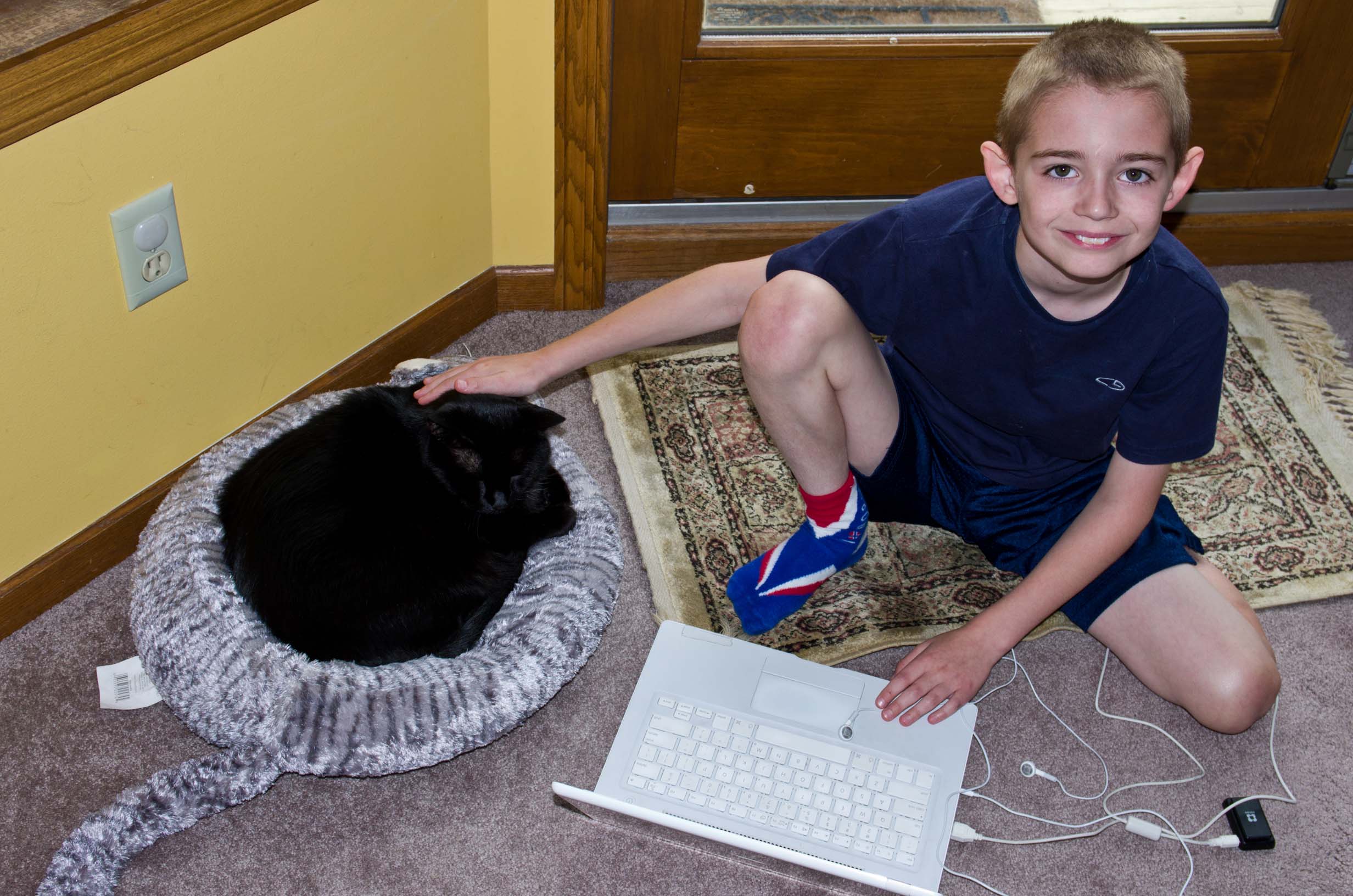 A boy and his cat |