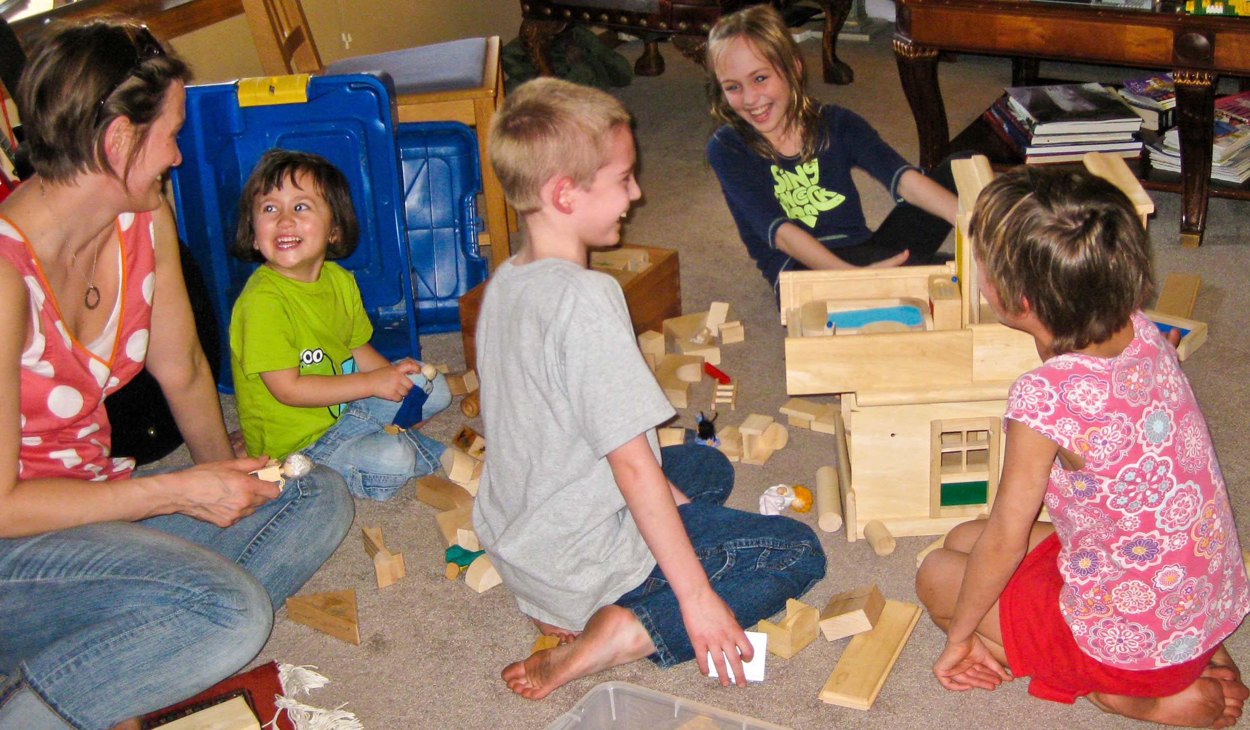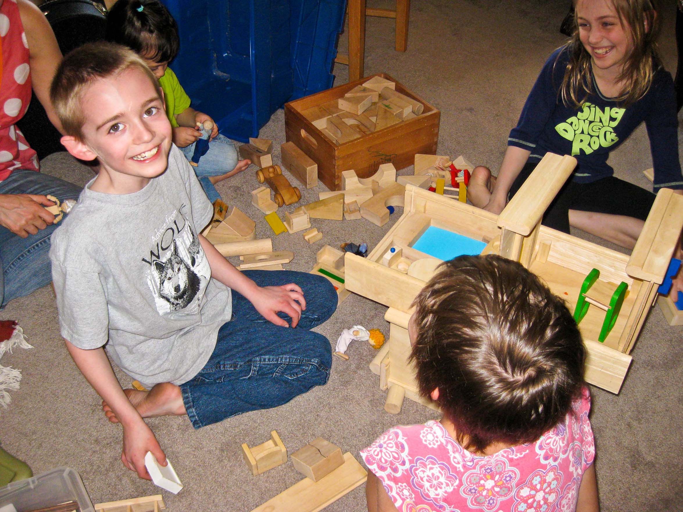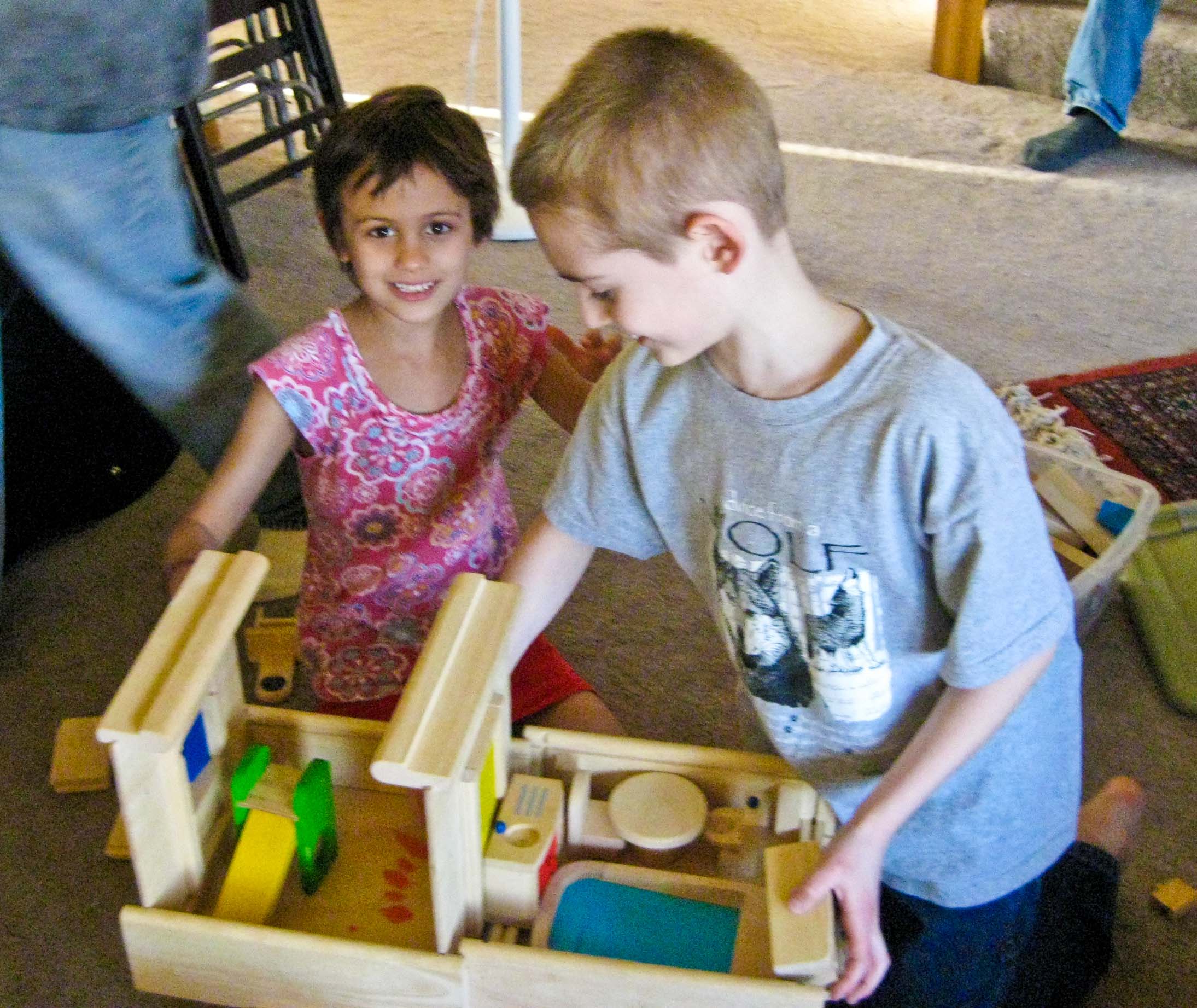 Playing with the toy house |