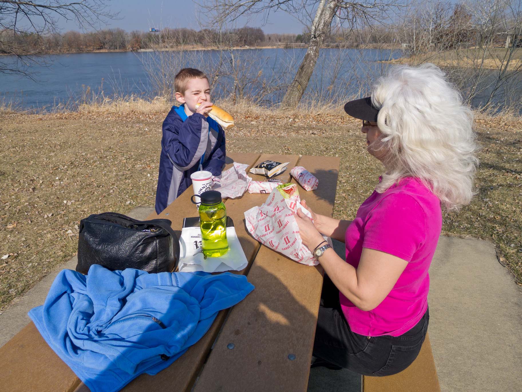Phyllis and Jamie picked me up at work for nice picnic by Island Lake |