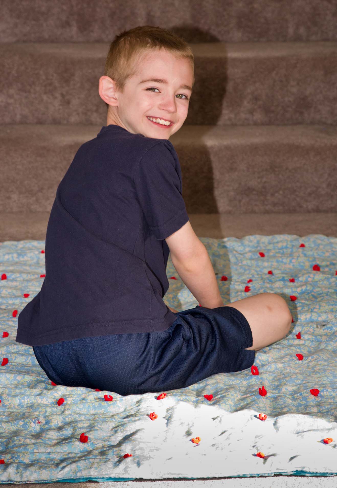 Jamie, sitting on the blanket his great-grandmother (Phyllis's grandmother) made and that he has been using on his bed for years. |