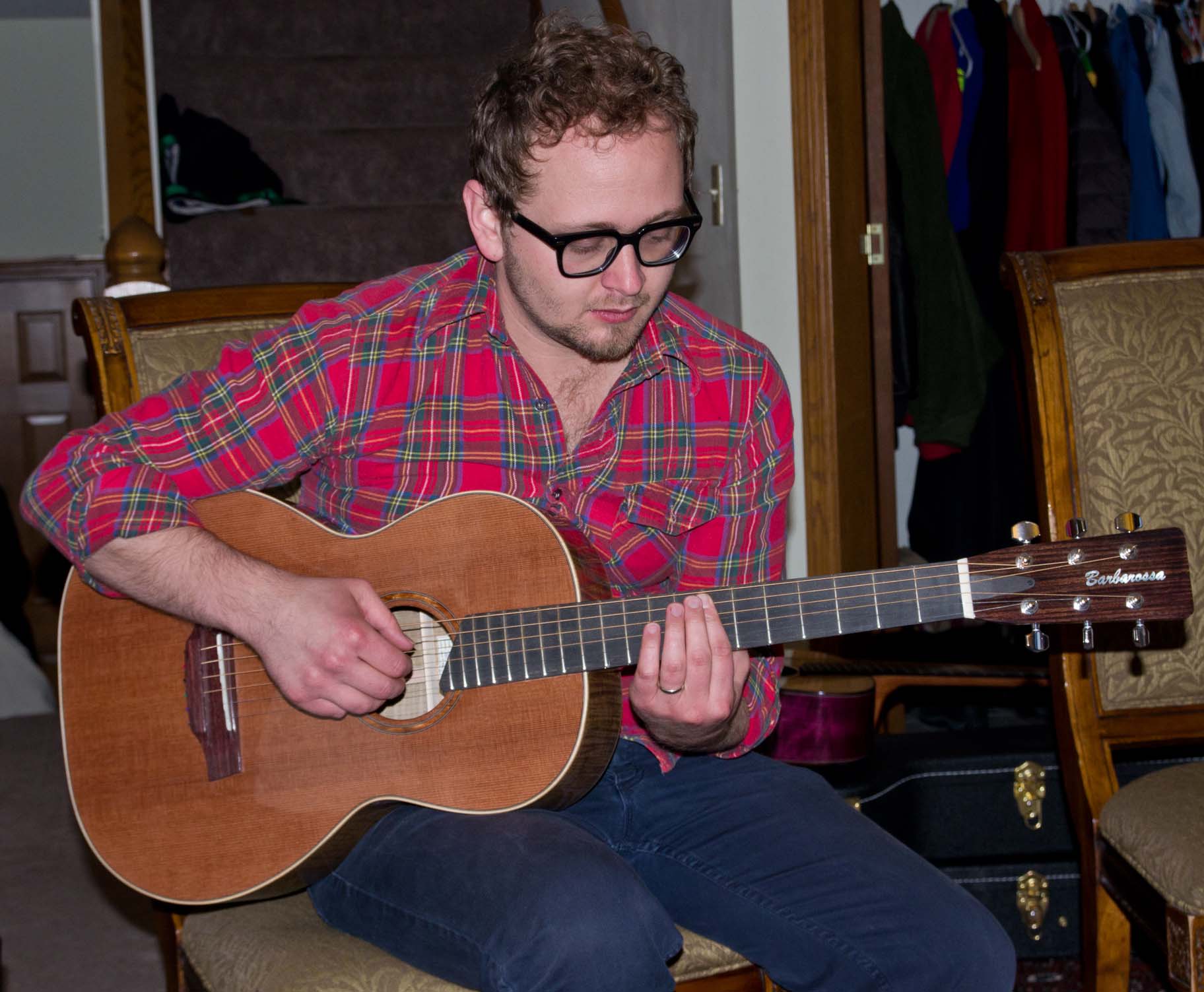 Kent playing his new guitar for the first time! |