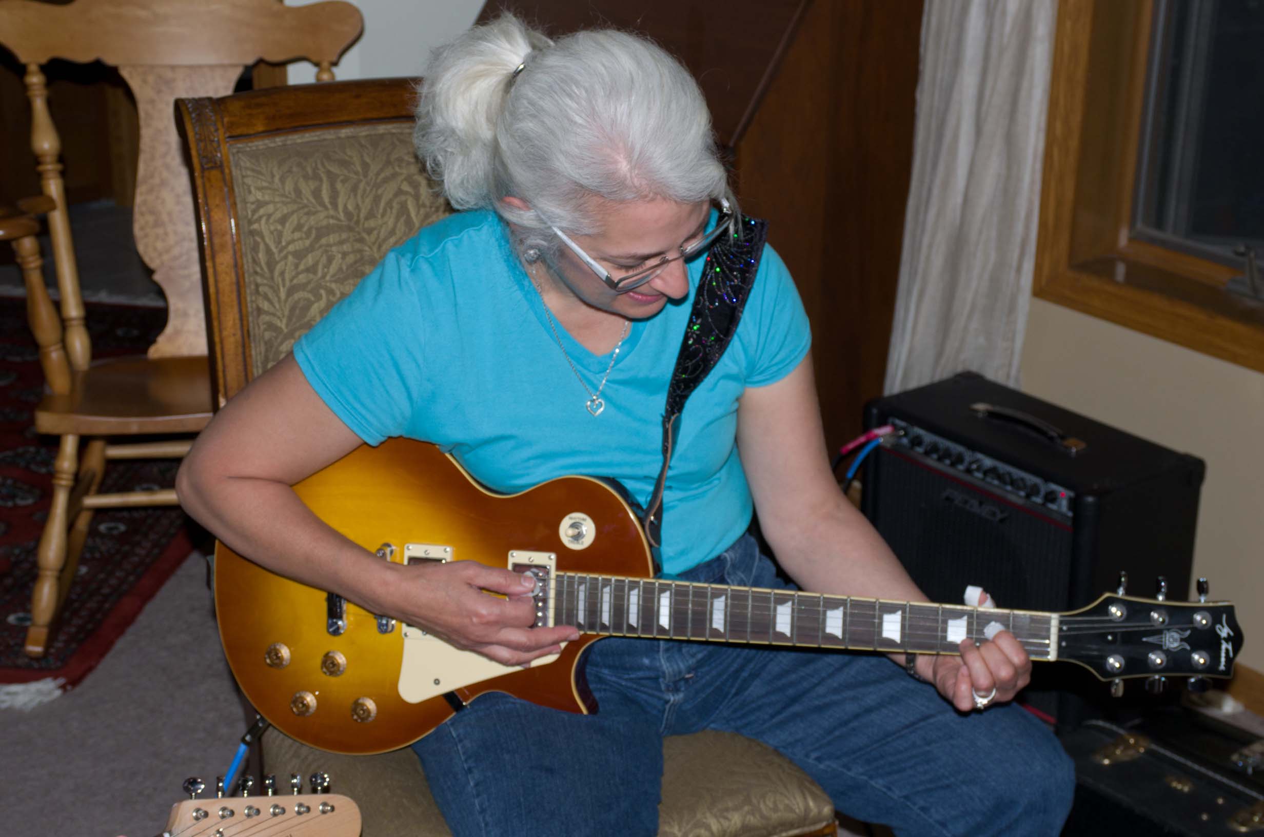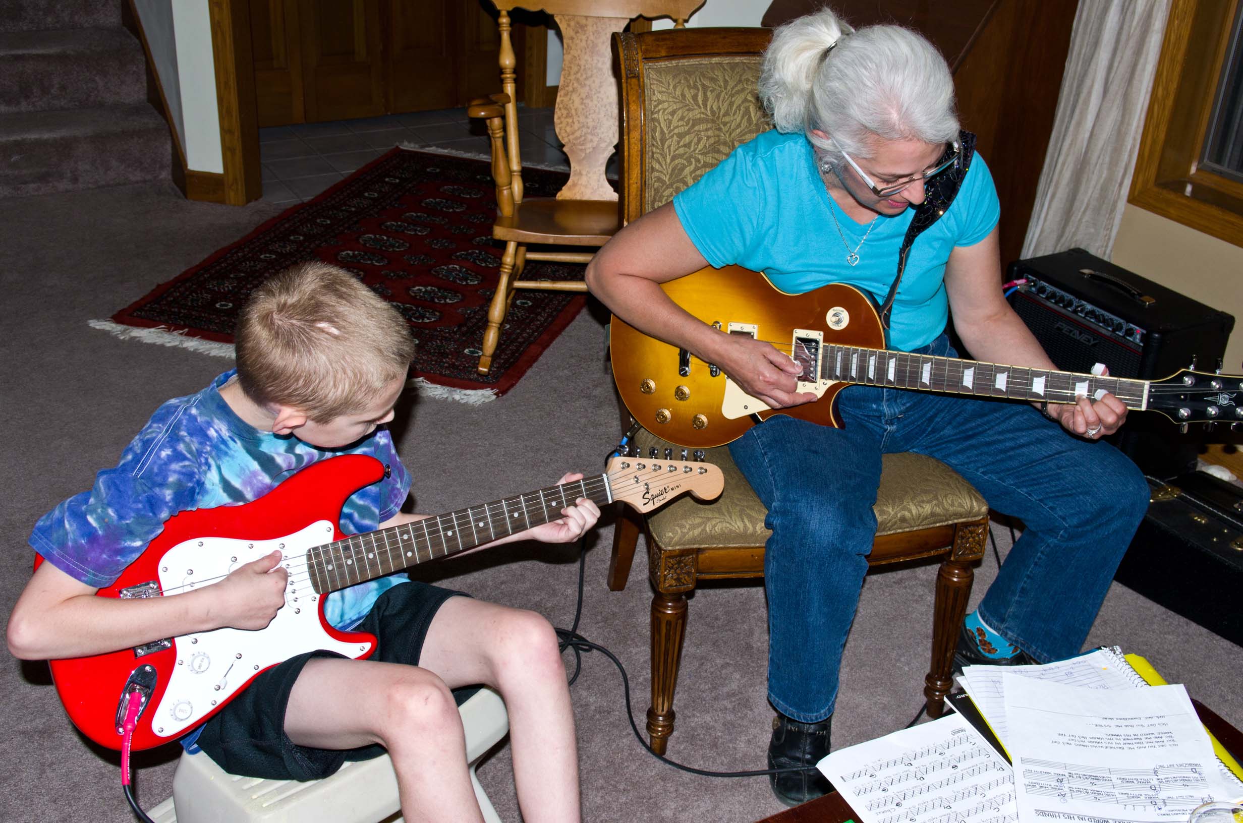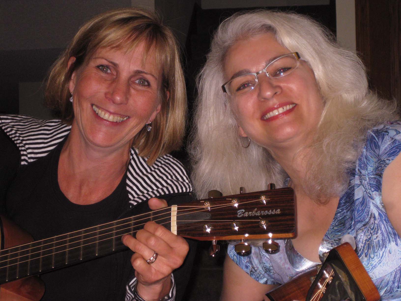 Phyllis and Jami enjoying their guitars |