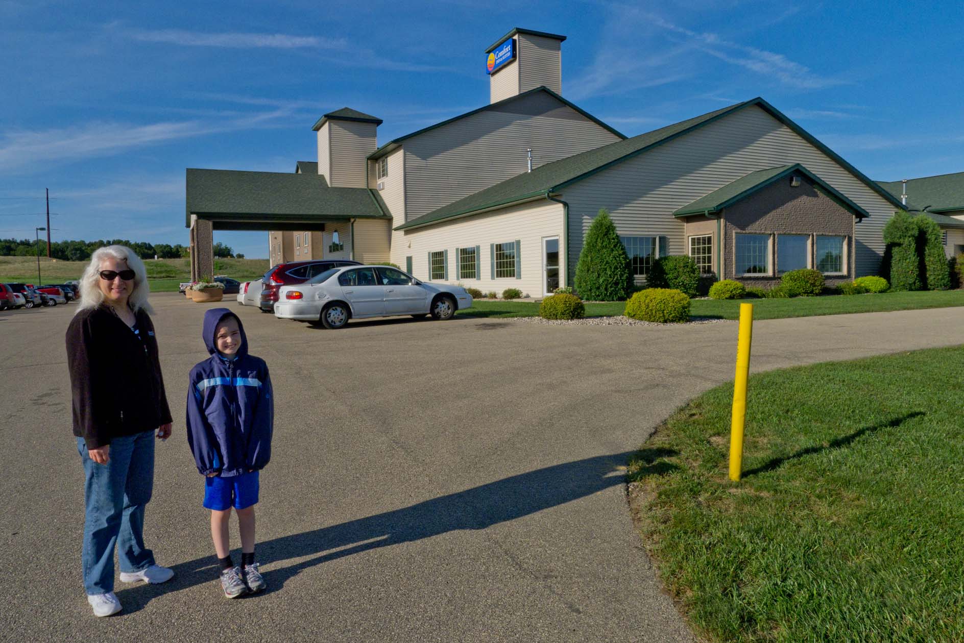 Walking around Shawano. The motel and Wolf River |