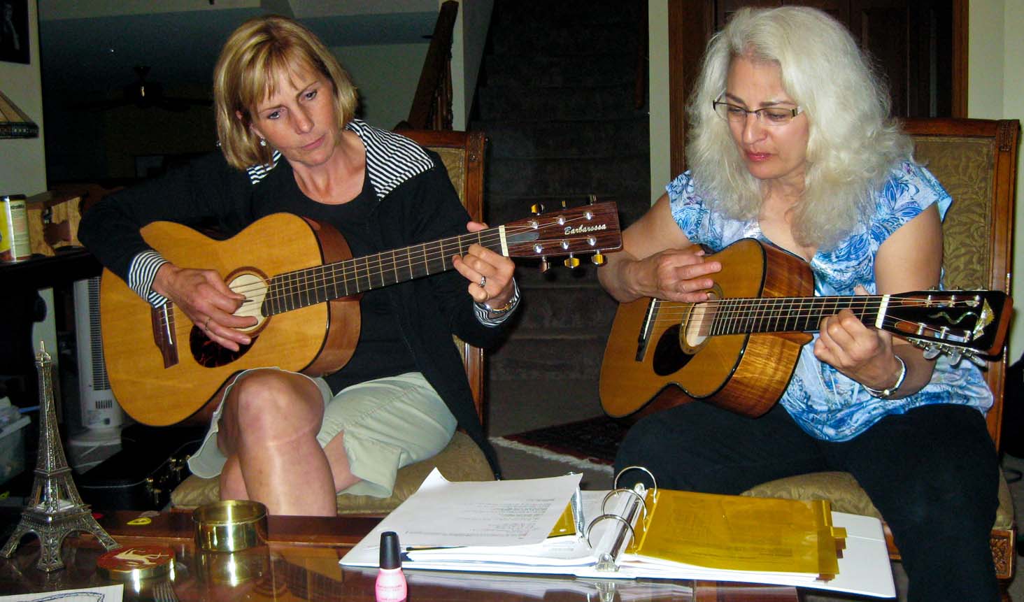 Phyllis and Nannette enjoying their guitars |