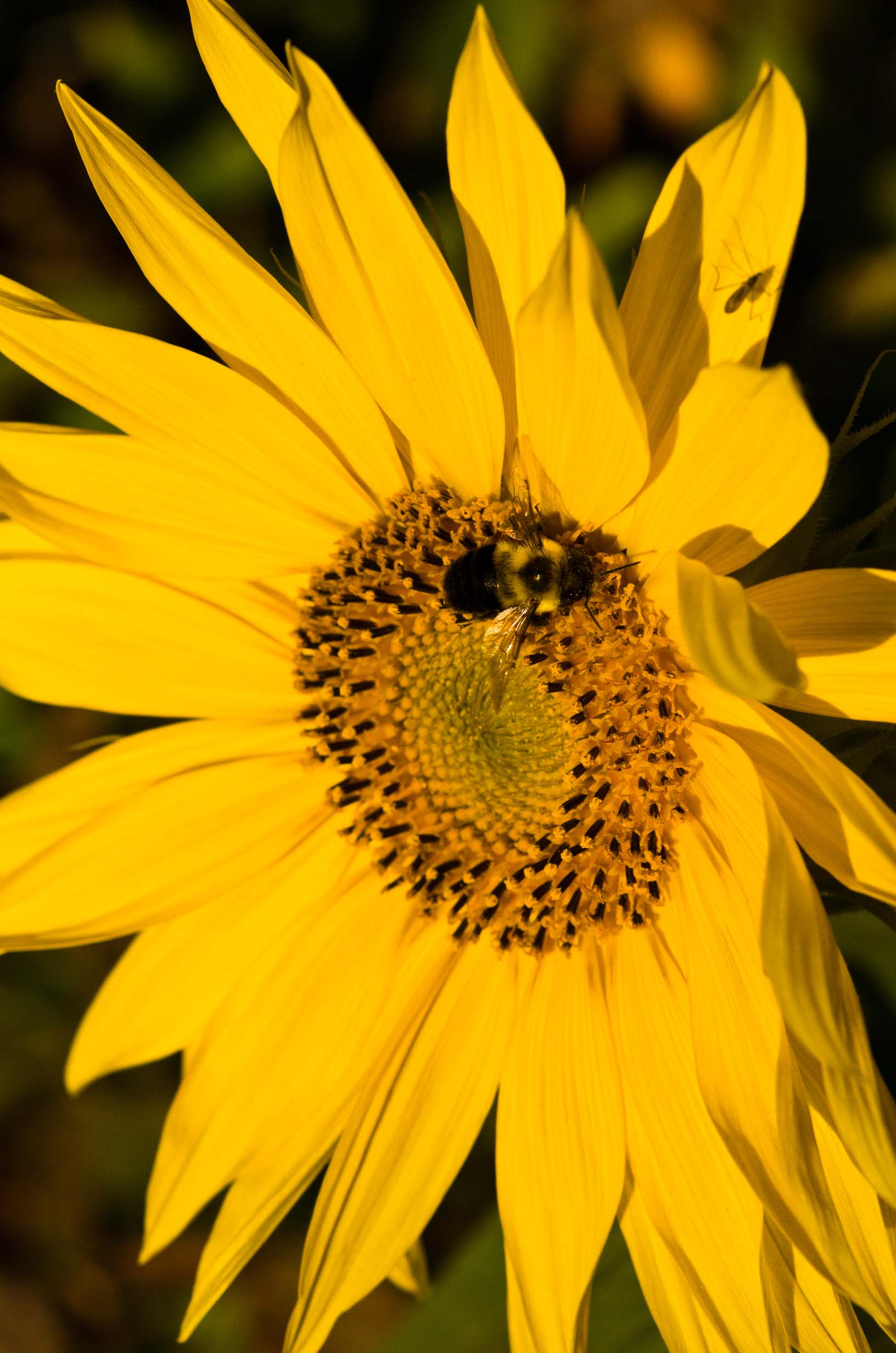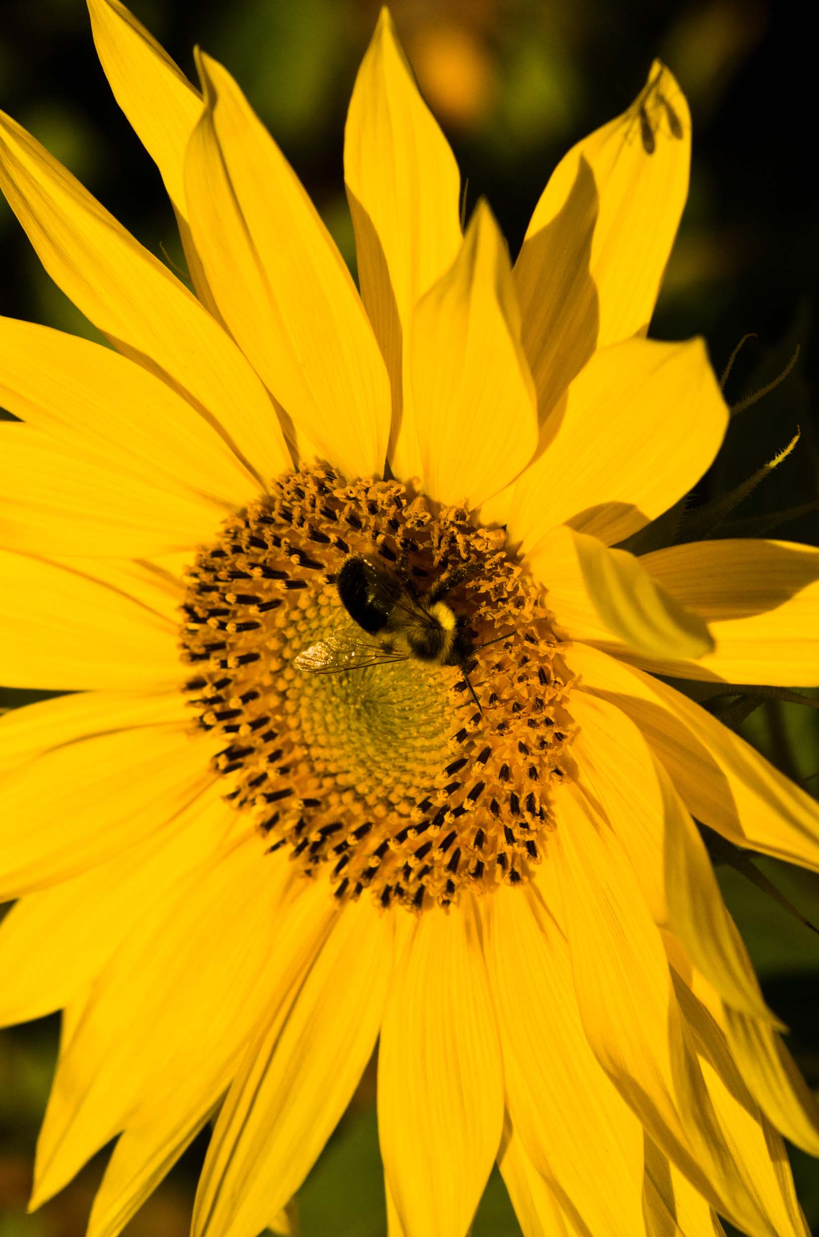 Bumble bee on the sunflower, and sunflower detail |