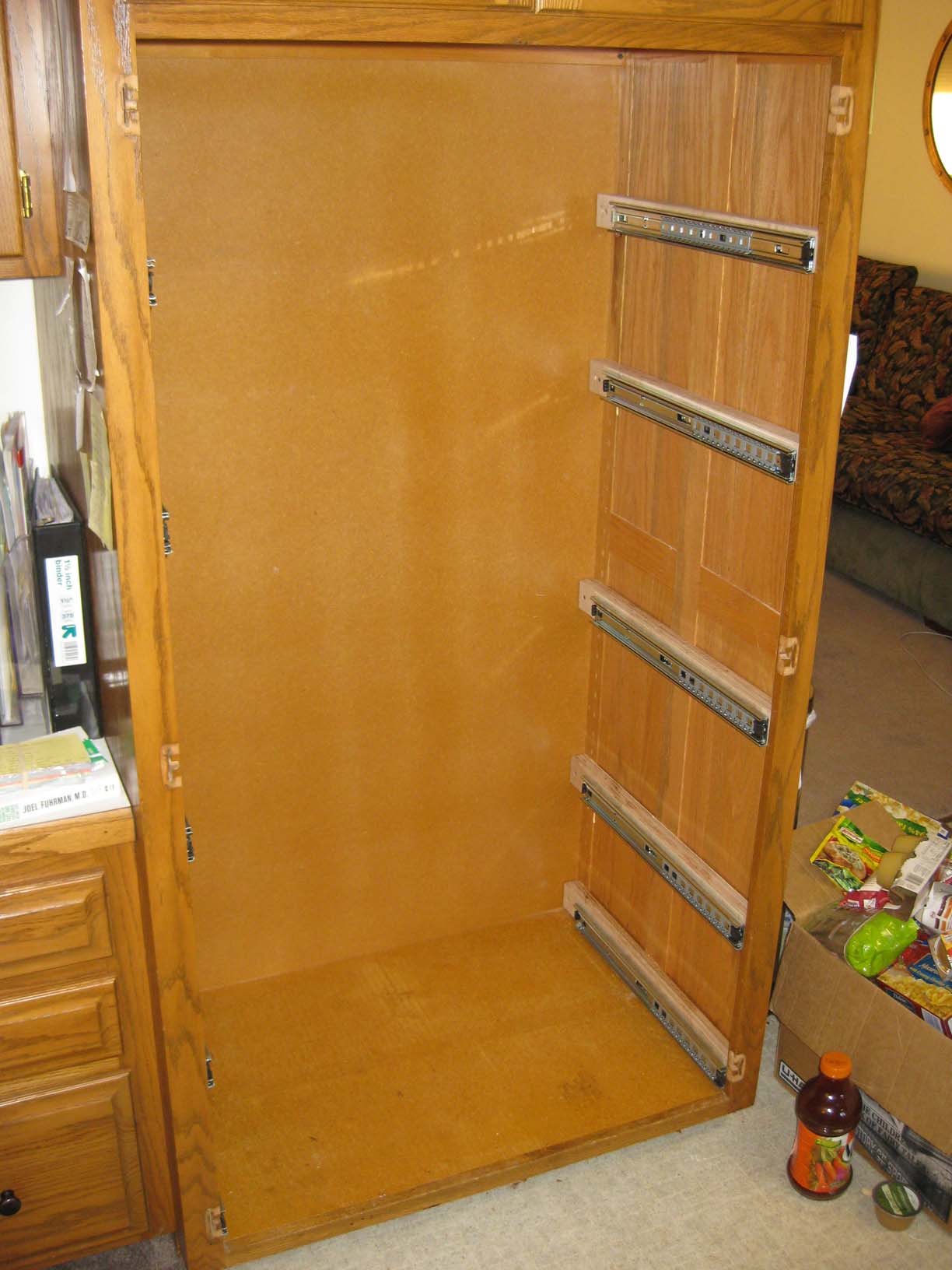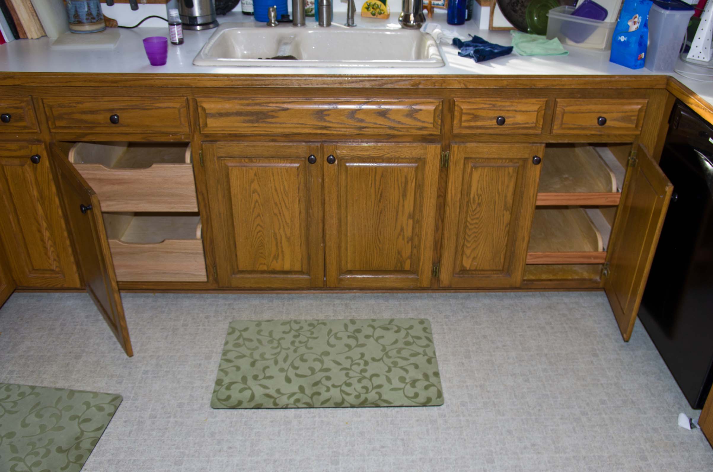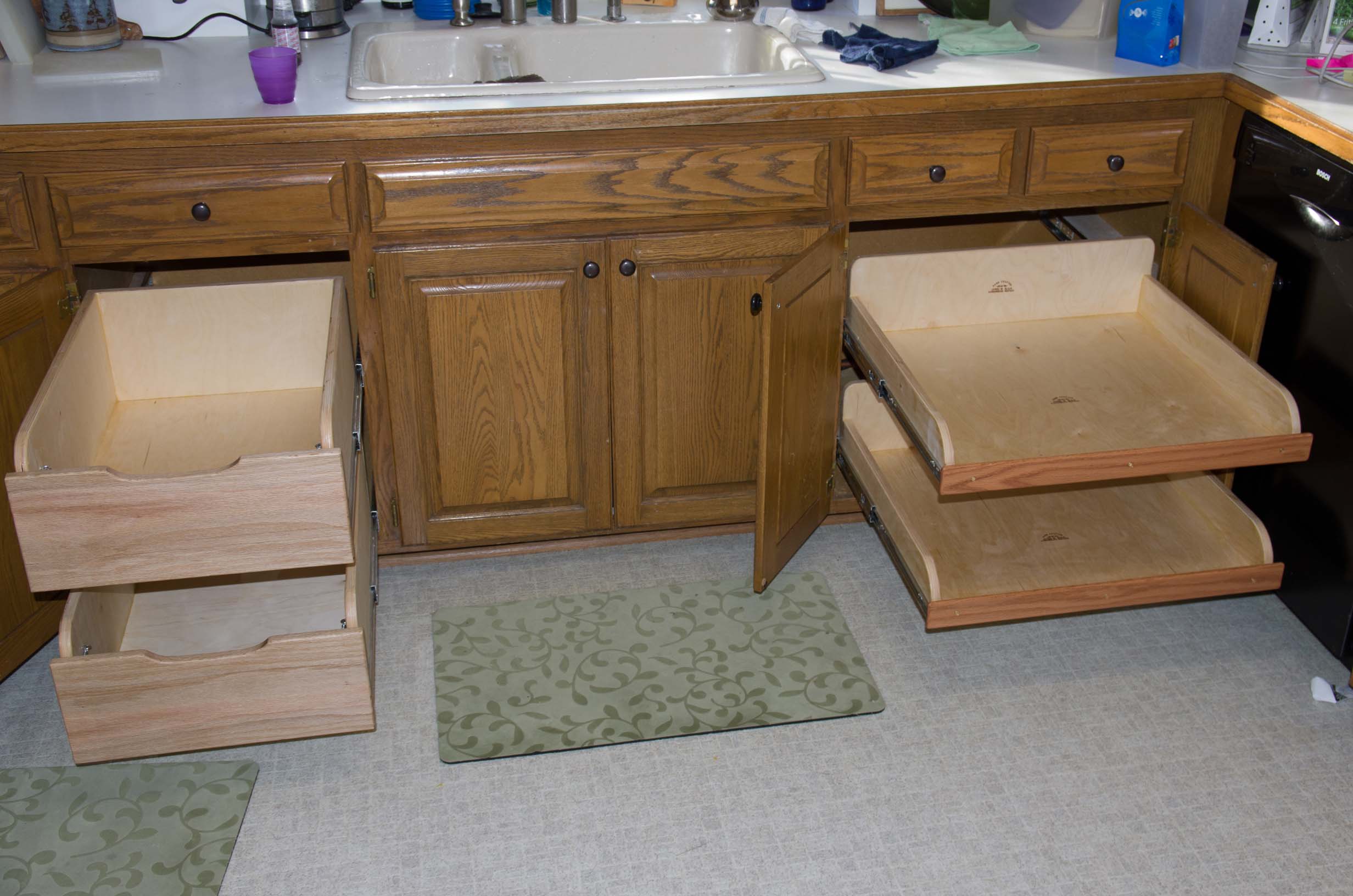 Before: Adding full-extension shelves to the remaining under-counter cabinets. |