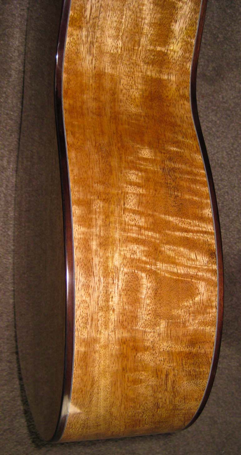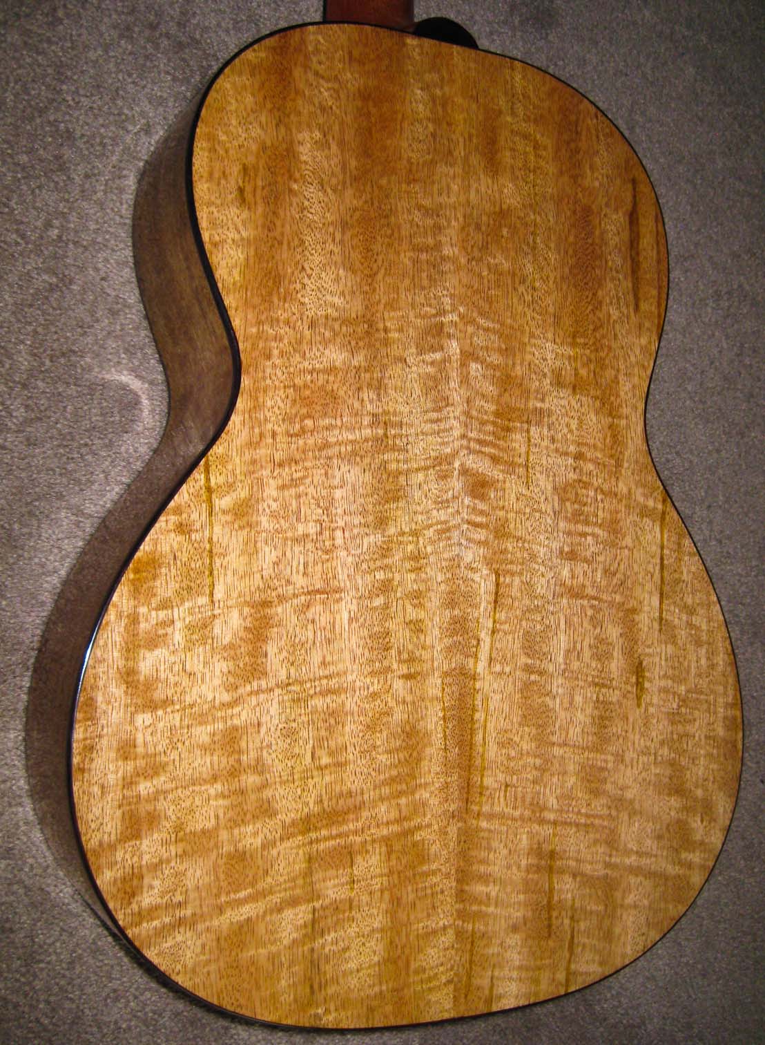 New guitar with curly mango back, sides, and bridge Now I can say: I gave this guitar to my cousins in Norway: Lars Christian, Jon Anders, Ellen Johanne, and Benedikte Narum. They have it and I lok forward to good reports! |